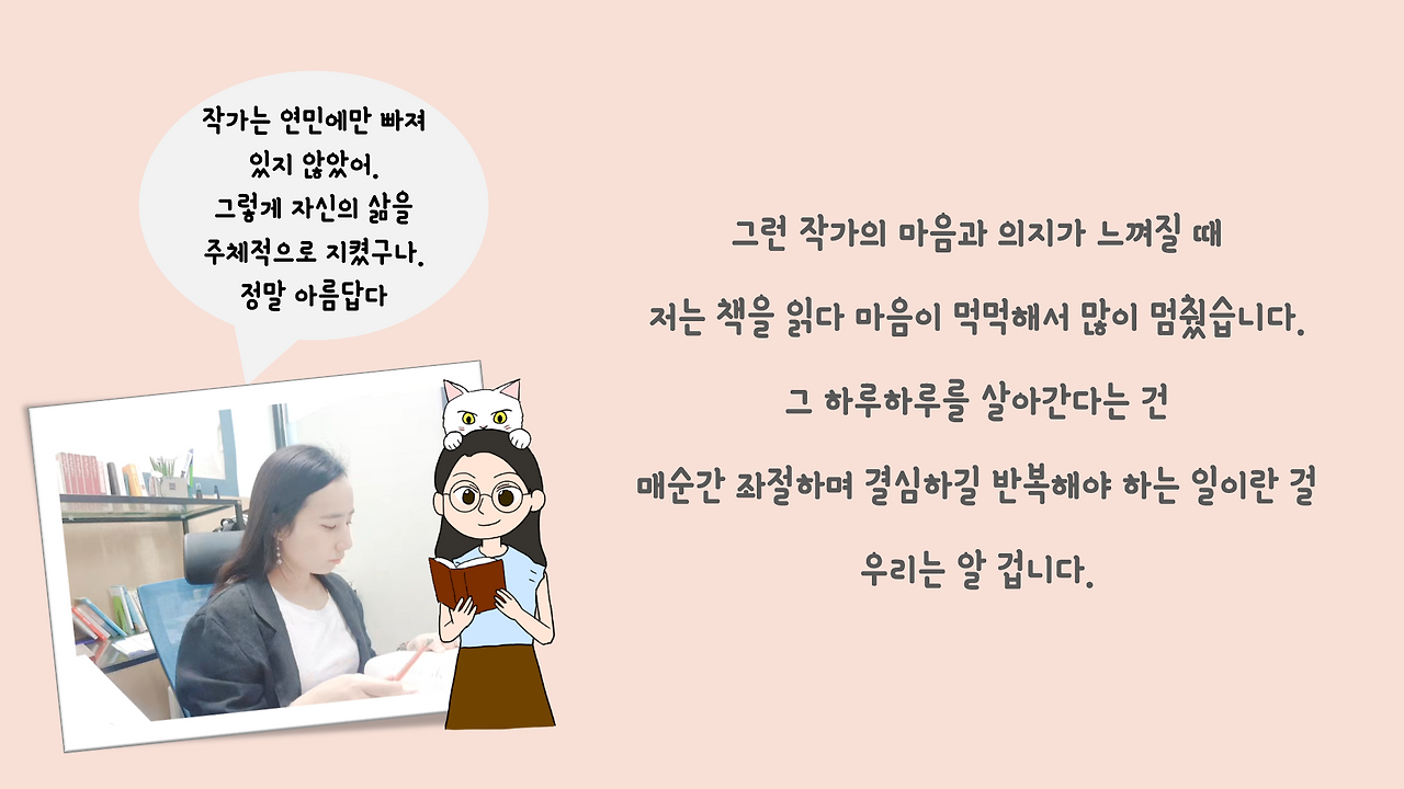 저는 책을 읽다 마음이 먹먹해서 많이 멈췄습니다.