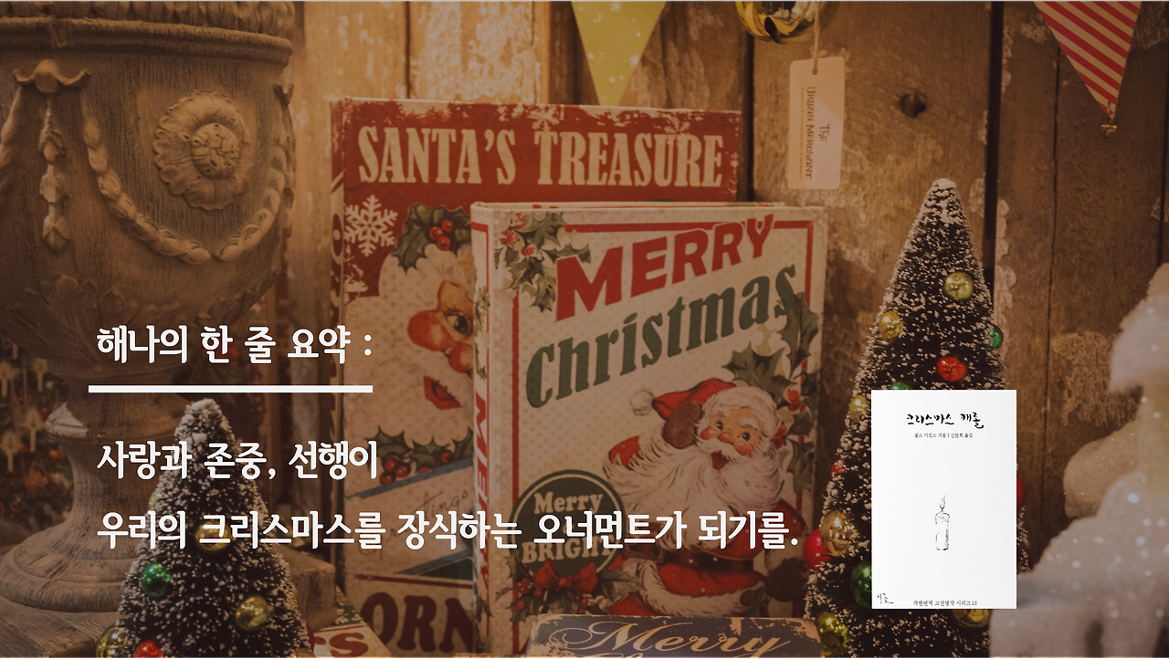 해나의 한 줄 요약 : 사랑과 존중, 선행이 우리의 크리스마스를 장식하는 오너먼트가 되기를.