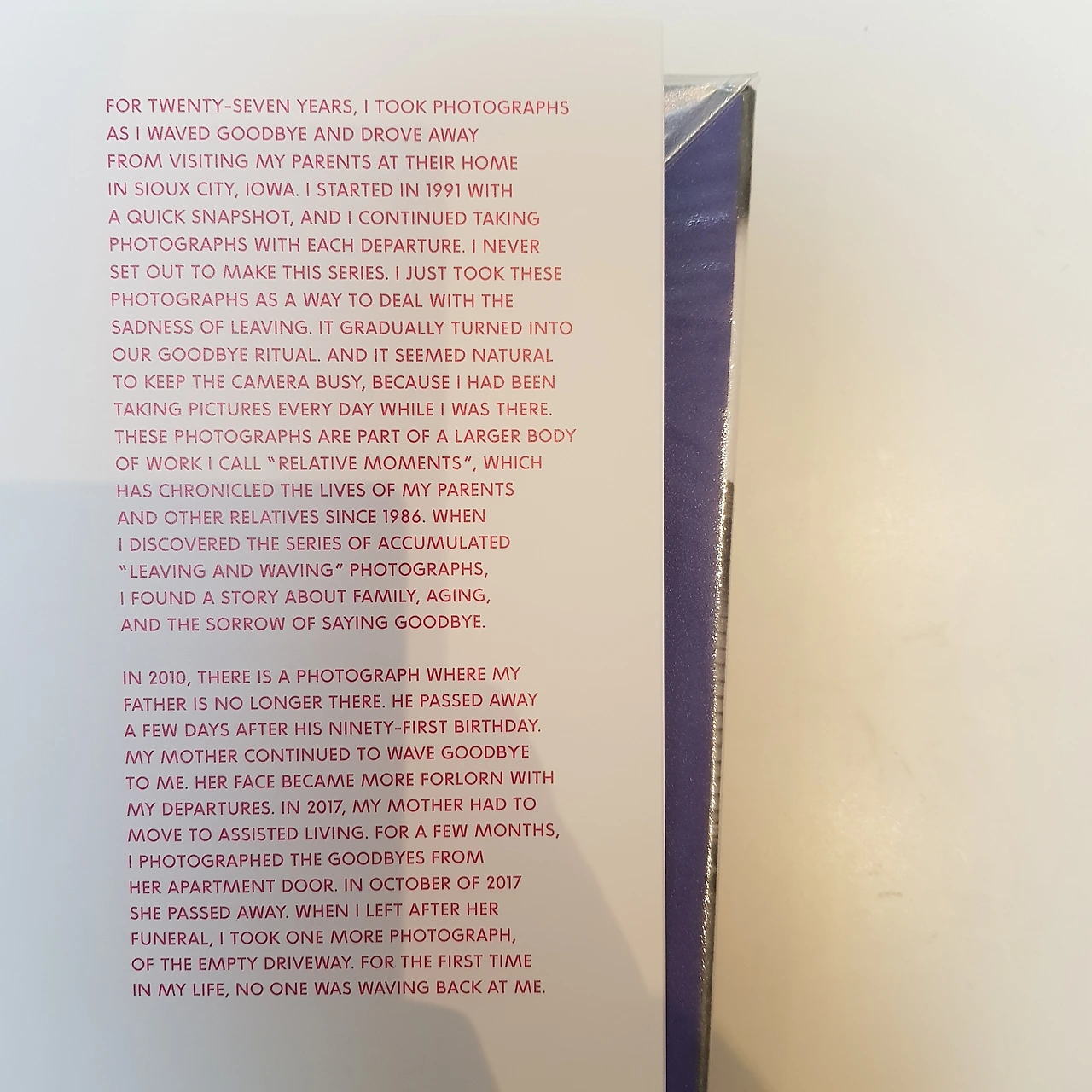 디에나 다이크만(Deanna Dikeman)은 27년에 걸쳐 자신을 배웅해 주는 부모님의 모습을 사진에 담았다. 1991년부터 시작된 이 프로젝트는 (처음 사진을 찍을 땐 프로젝트가 될지 몰랐다) 2017년 어머니가 세상을 떠날 때까지 계속된다. 사진집을 넘기다 보면 2009년이 지날 즈음 아버지의 사진이 없다. 그래서 사진집을 넘기다가 문득 훅 하고 들어오는 슬픔을 경험하게 된다. 그리고 그 후 8년 동안 내내 혼자 배웅하시는 고운 어머니의 모습. 그리고 어머니의 장례를 마친 후 두 분의 모습이 없는 부모님 집의 풍경을 담으며 이 사진집은 마무리된다.