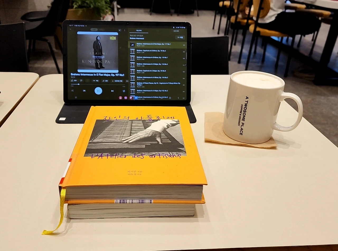 카페에서 <장인의 아틀리에>를 읽으며 건우쌤이 연주한 브람스의 인터메초를 들었다.