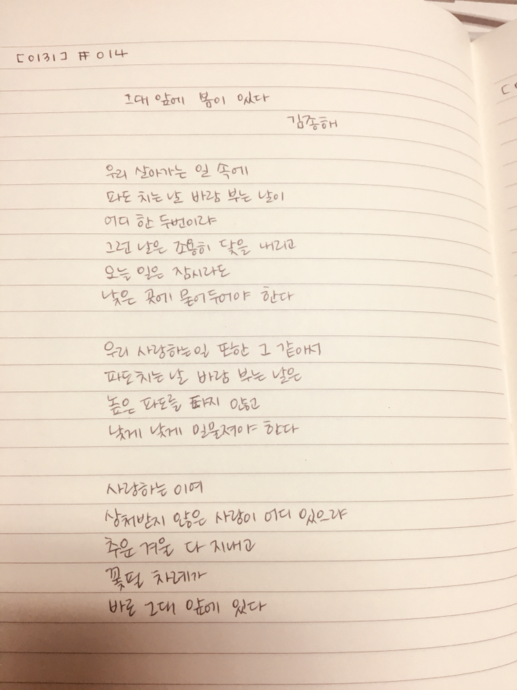 14일차 <그대 앞에 봄이 있다> by 김종해