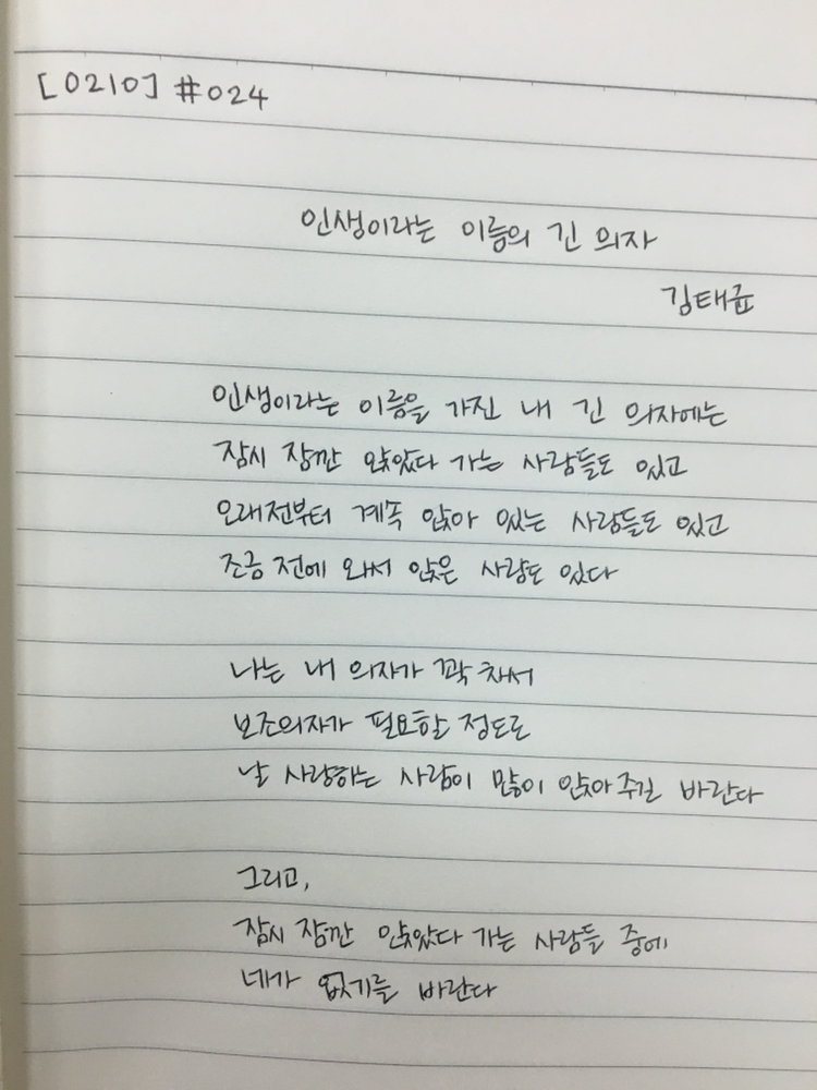 24일차 <인생이라는 이름의 긴 의자> 김태균