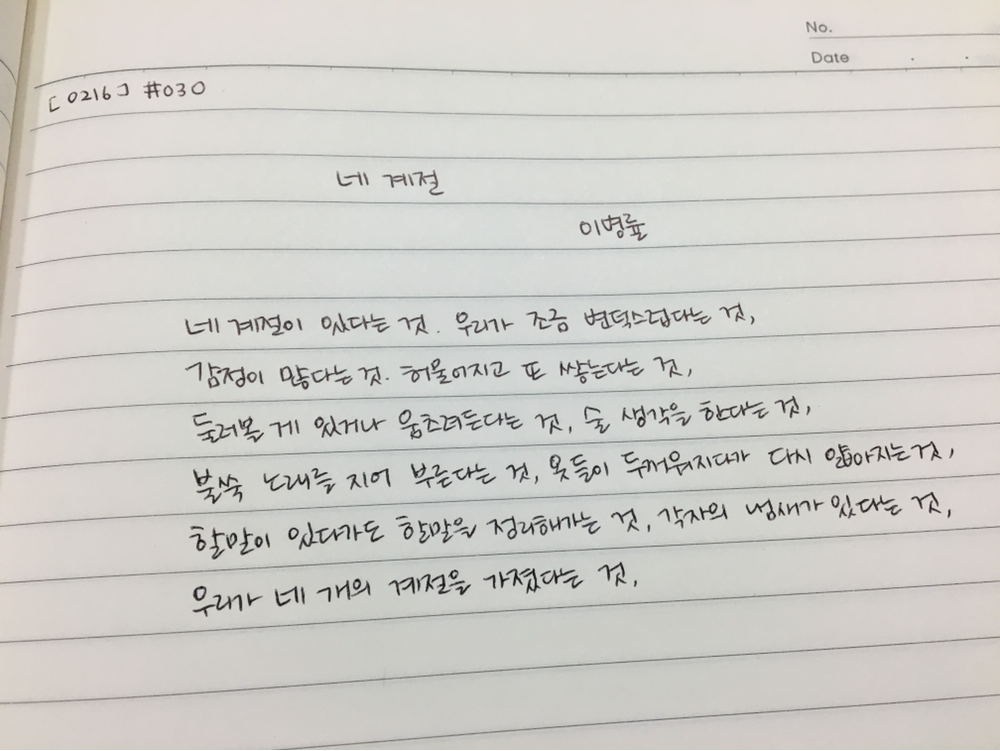 30일차 <네 계절> 이병률