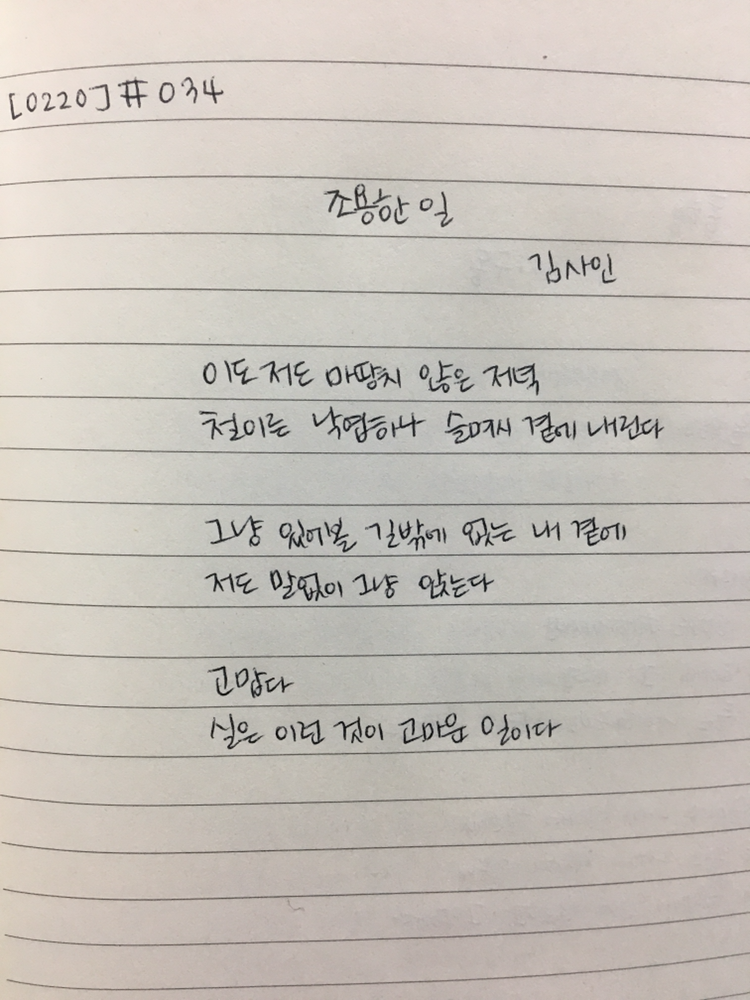 34일차 <조용한 일> 김사인
