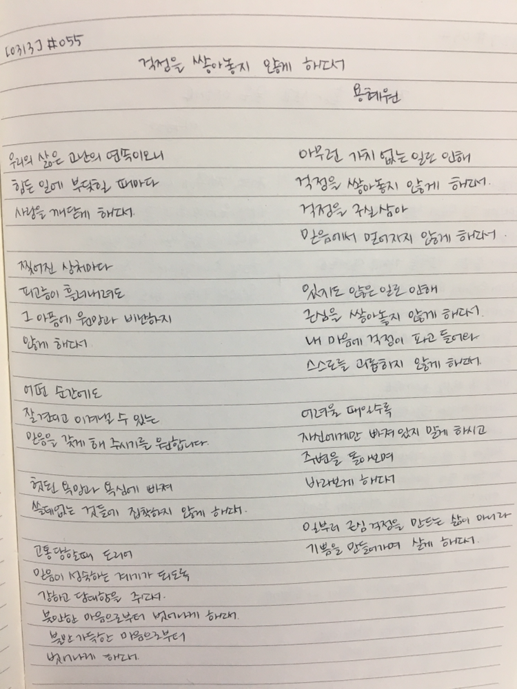55일차 <걱정을 쌓아놓지 않게 하소서> 용혜원