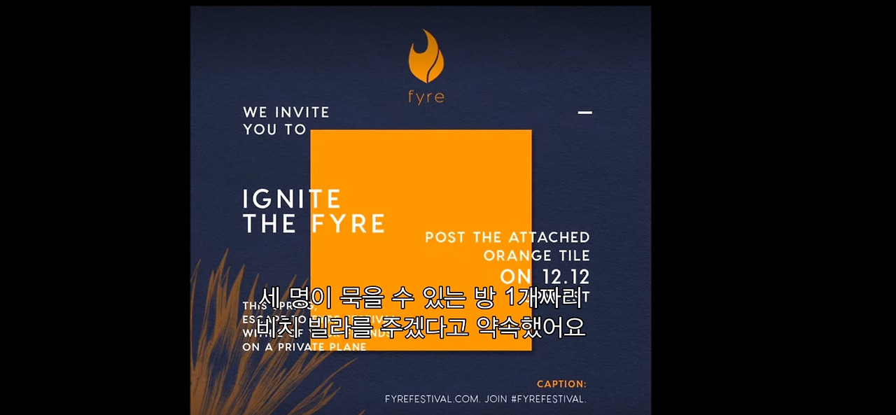 정말 방탕 그 자체다. 하루종일 제트스키 타고 술마시고 낮에 뻗어있는 이들은 페스티벌에 대한 어떠한 계획도 실천도 하지 않은 채 비싼 값을 주고 고용한 슈퍼모델이나 금수저 인플루언서들에게 정확히 몇 월 며칠 몇 시에 인스타그램에 오렌지색 화면을 올리고 파이어 페스티벌 해시태그를 넣으라고 해 '어 이게 뭐지'라는 궁금증을 자아내게 한다.