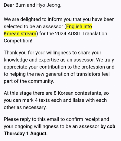 동기가 소개해준 통역 자리였다. 한국에 먼저 간 통대 동기가 연락이 와서 호주에 언니 있는거 생각나서 잘 부탁한다는 말과 함께 일을 소개해줬다. 나도 나중에 일이 생기면 소개를 해 줘야겠다고 생각했다.