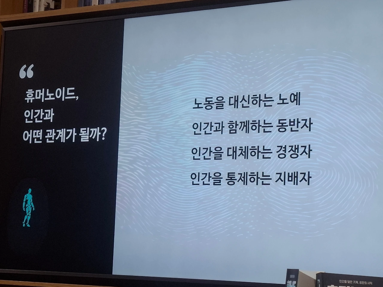 최근에 코엑스에 볼 일이 있어서 방문하였습니다. 때때로 별마당 도서관에서 강사분들을 모셔다 강의를 진행하는데, 그날은 운 좋게도 관심 있는 휴머노이드와 관련된 강의가 준비되어 있기에 첫 줄에 앉아 듣게 되었습니다. 김상균 교수님이 인지 과학자로는 유명하신 분이라 하고 책도 쓰신 분이더군요. 그런 분의 강의를 직접 들을 수 있게 되었으니 저는 정말 운이 좋았습니다.