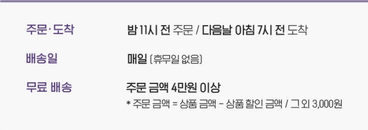 마켓컬리는 11시까지 주문하면 다음 날 새벽 배송해주는 서비스의 선구자이자 업계 1위이다.