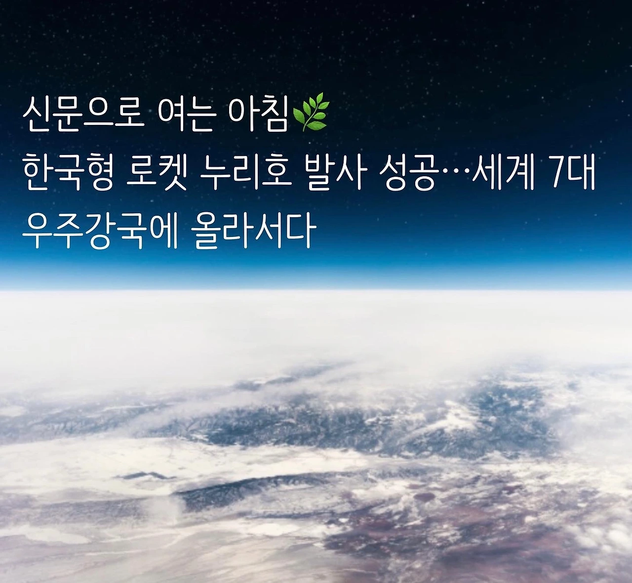 한국이 독자 기술로 개발한 우주 로켓 누리호가 위성 5개를 싣고 성공적으로 발사됐다. 한국은 미국 러시아 중국 일본 EU 인도에 이어 1t 이상 실용위성을 자력 발사한 세계 7대 우주강국에 올라섰다. 로켓 1화 발사로 복수 위성을 우주로 올리는 게 가능해지면서 관측, 정찰, 통신 등 다양한 기능을 갖춘 위성 발사가 더욱 빈번해질 전망이다. 누리호 후속 발사체인 차세대발사체 개발사업도 시작됐다. 달, 화성 등 심우주 행성에 대한 독자 탐사 기반을 갖추게 된다. 차세대발사체는 2030년 무인 달착륙선 시험 발사에 처음 투입한 뒤, 이듬해 착륙선 실체 발사를 목표로 개발된다. 어제 아이들과 함께 봤던 누리호 발사 영상은 기술 선진국 못지않게 자랑스럽던 순간이었다. 우리나라에 대한 자긍심이 생기던 순간이지 않았을까. 연구원과 기업들의 땀과 열정 덕분에.
