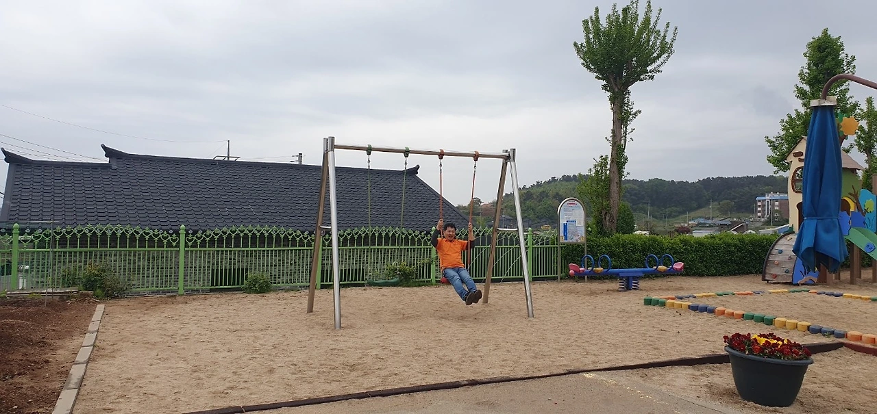 학창 시절 아름드리 플라타너스 나무가 시원한 그늘을 만들어 주던 자리엔 그네와 미끄럼틀이 설치되어 있다.
