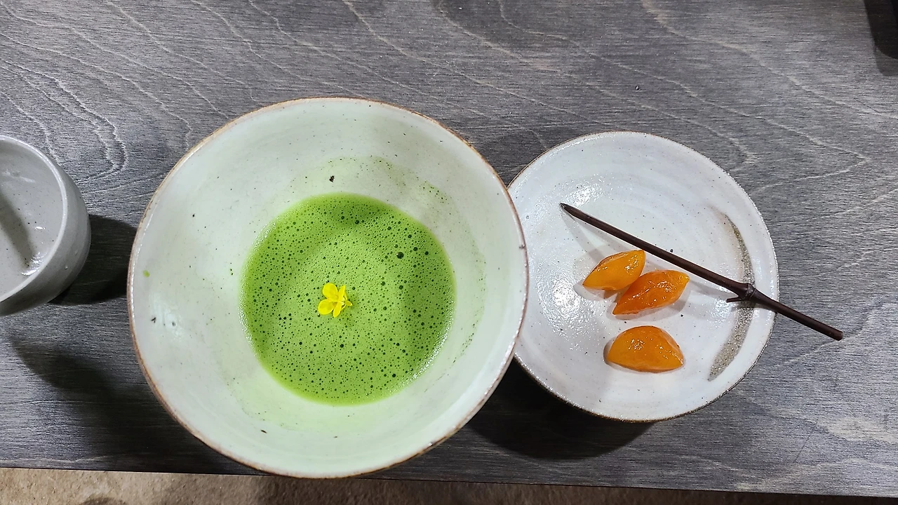 김선미 도예가가 직접 만든 간식과 말차. 목련차와 밀크티를 우려 마셨다.