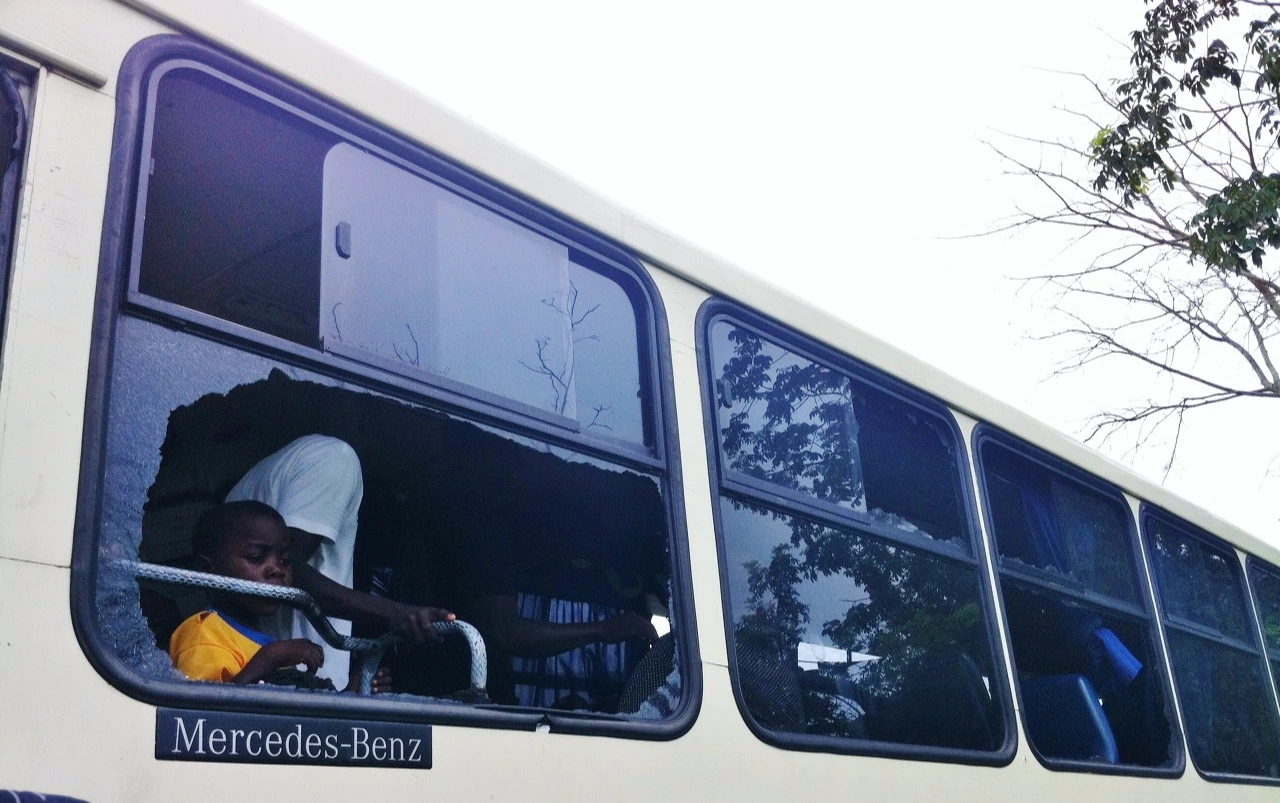 정적이 흐른다. 천만 다행히 용감한 버스 기사는 다시 운전을 시작하고, 승객들은 모두 같은 자세를 유지하며 각자의 안위를 살핀다. 그 안에서 일종의 연대감이 생기는데, 생사를 같이 하는 상황이 서로를 보듬게 만든다. 다시 제 속도를 내고 어느 정도의 시간이 지나면서 약간의 안도감이 찾아온다. 대부분의 승객이 몸을 움츠린 채 그런 자신의 상황을 사진 찍기도 하고 바깥을 슬쩍 살피기도 한다. 약 1시간여 용감한 버스 기사는 과감히 그 지역을 빠져나간다. 그렇게 무사히 뚫고 나온 버스의 상태를 보았을 때 우리는 놀라지 않을 수 없었다. 창문 양쪽이 거의 대부분 깨져있고, 커튼 사이와 버스 바깥에 총알 자국을 볼 수 있다. 천만다행으로 그 누구도 다치거나 죽지 않았지만, 무섭게도 총알은 왼쪽 창문을 스쳐 오른쪽 창문까지 거의 수평을 그리며 지나갔다는 사실에 경악한다. 이건 어떤 경고가 아니라 정말 사람을 죽이려 했다는 증거다. 그렇게 총 9발의 총알 자국이, 안정되지 않은 모잠비크의 치안이 내가 탑승한 ‘그 버스’에 새겨져 있었다.