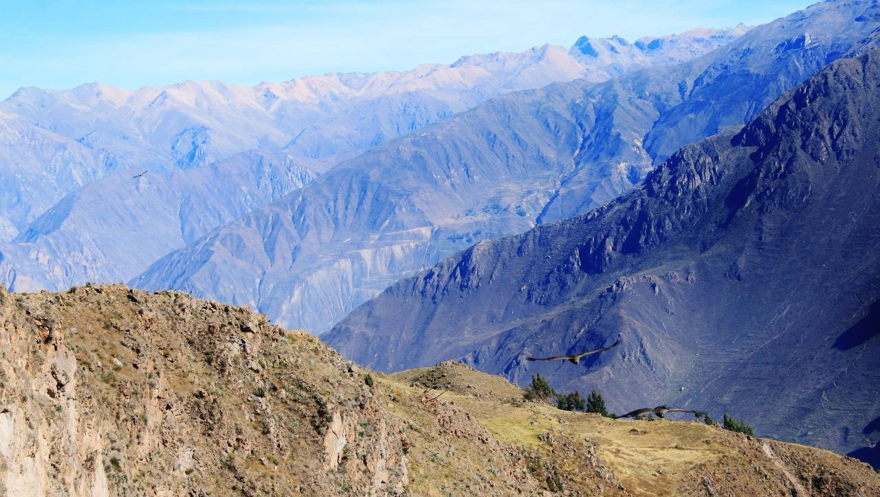험난한 길을 지나 페루의 남쪽 아레키파Arequipa에 가는 이유는 협곡과 거대한 새 콘돌을 보기 위해서다. 꼴까 캐년을 지나는 트래킹은 특이하다. 높고 험준한 곳을 위에서 내려가 구경한 뒤 올라가야 하는 거꾸로 등반코스이다. 깊은 협곡 사이를 비집고 뙤약볕이 내리 쬐는 날 건조한 땅을 밟고 내려간다. 그곳에는 남미의 상징 검은색 콘돌이 자신의 우아한 자태와 자유로움를 뽐내며 잦은 날개짓 없이 창공을 가른다. 거대한 몸뚱이가 어떤 제약도 없다는 듯 협곡 사이를 난다.