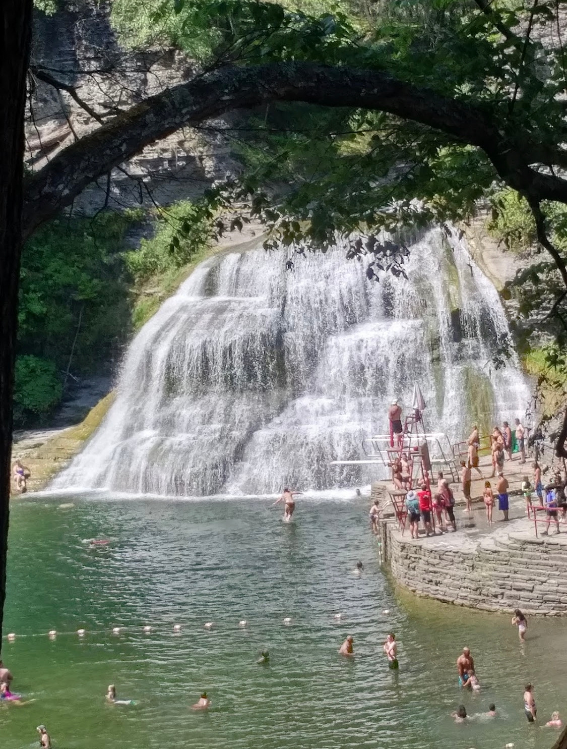 뉴욕 주민들이 물놀이를 위해 즐기는 폭포는 따로 있는데 바로 이타카에 위치한 로버트 트레맨 Robert H. Treman 뉴욕 주립 공원에 위치한 엔필드 Enfield폭포이다. 사실 요즘 코넬대 한국 유학생들의 국뽕이 차오르는 이유는? 에서 소개한 대로 코넬대학교가 위치한 이타카는 폭포가 있는 주립 공원을 무려 3개나 가지고 있는 폭포 부자 동네이다.