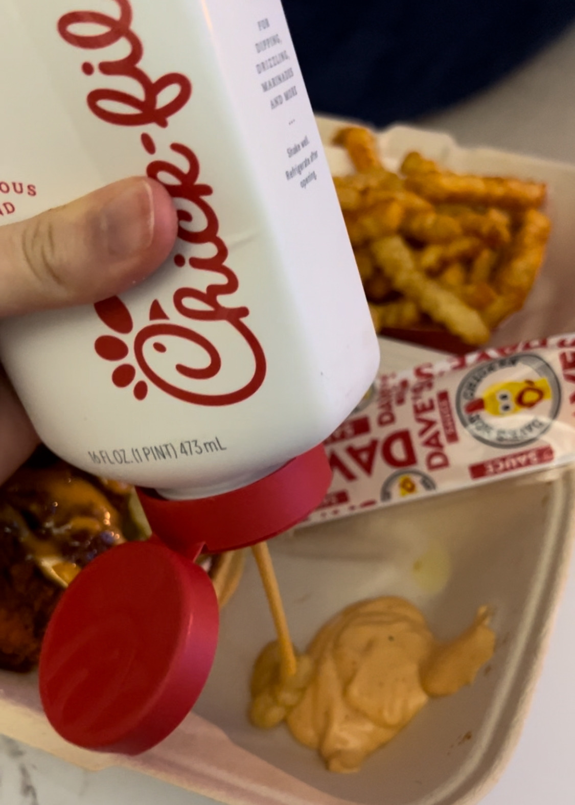 미국 치킨집 소스 중 개인적으로 가장 맛있는 양념은 칙필레! 월마트에서 칙필레 소스를 한 통 사다가 감자튀김을 찍어먹곤 하는데 정말 칙필레 소스만 한 감칠맛 나는 소스가 없는 것 같다.