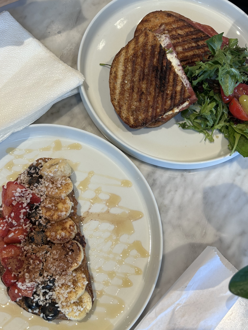 그래서 단점이라면 가격이 높은 편이라는 점. 가격을 제외하고는 연어가 들어간 샐러드나 아몬드 토스트 등 브런치나 가벼운 점심식사 메뉴 모두 괜찮았다.