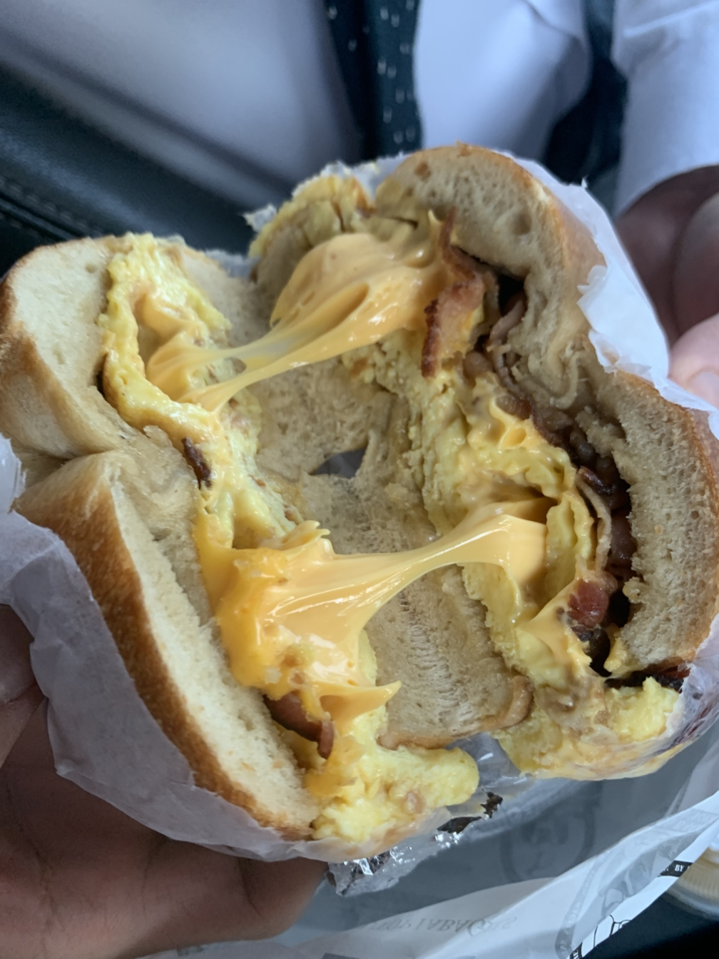 다음으로 맛본 베이글은 미국식 아침의 정석 중 하나인 플레인 베이글에 베이컨, 계란, 치즈가 들어가는 “Bacon, Egg and cheese” 베이글. 다른 말이 필요 없는 맛이 없을 수 없는 조합이었다.