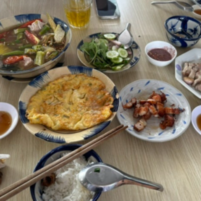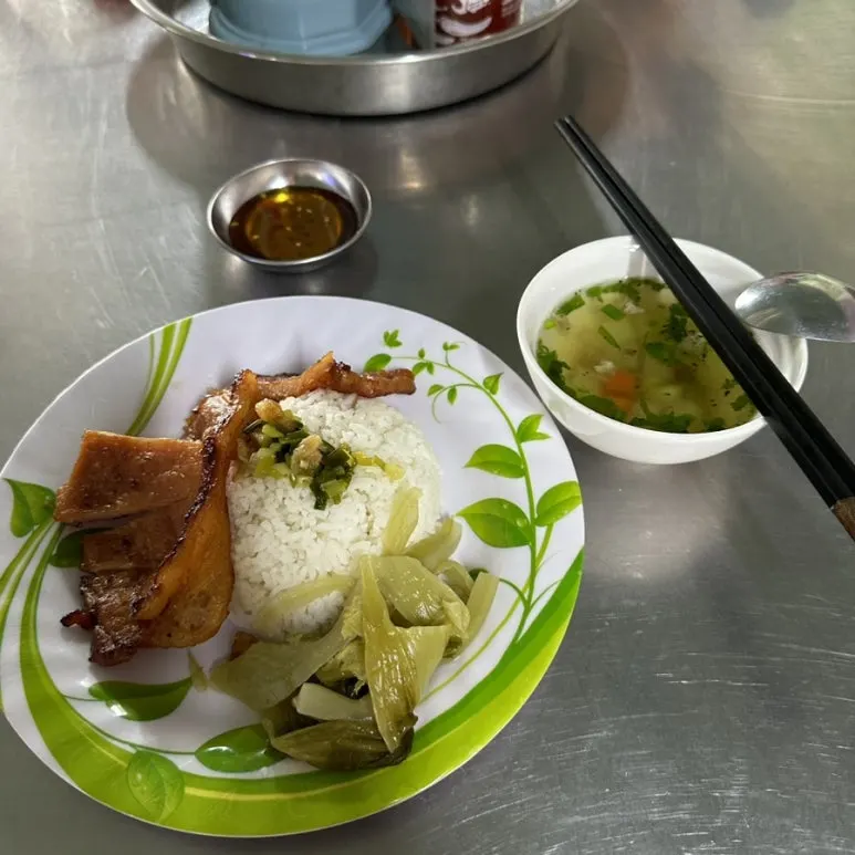 하룻밤을 묵었던 호텔에서의 조식을 제외하고 베트남에서의 ‘진짜 첫 끼’는 쌀밥 위에 구운 고기와 야채절임이 올라간 단출한 덮밥이었다. 나중에 이러한 메뉴를 '껌땀'이라고 부른다는 것을 알게 되었다. 모든 게 처음이었던 첫 날의 이 껌땀은 맛있었던 기억으로 남아있다.