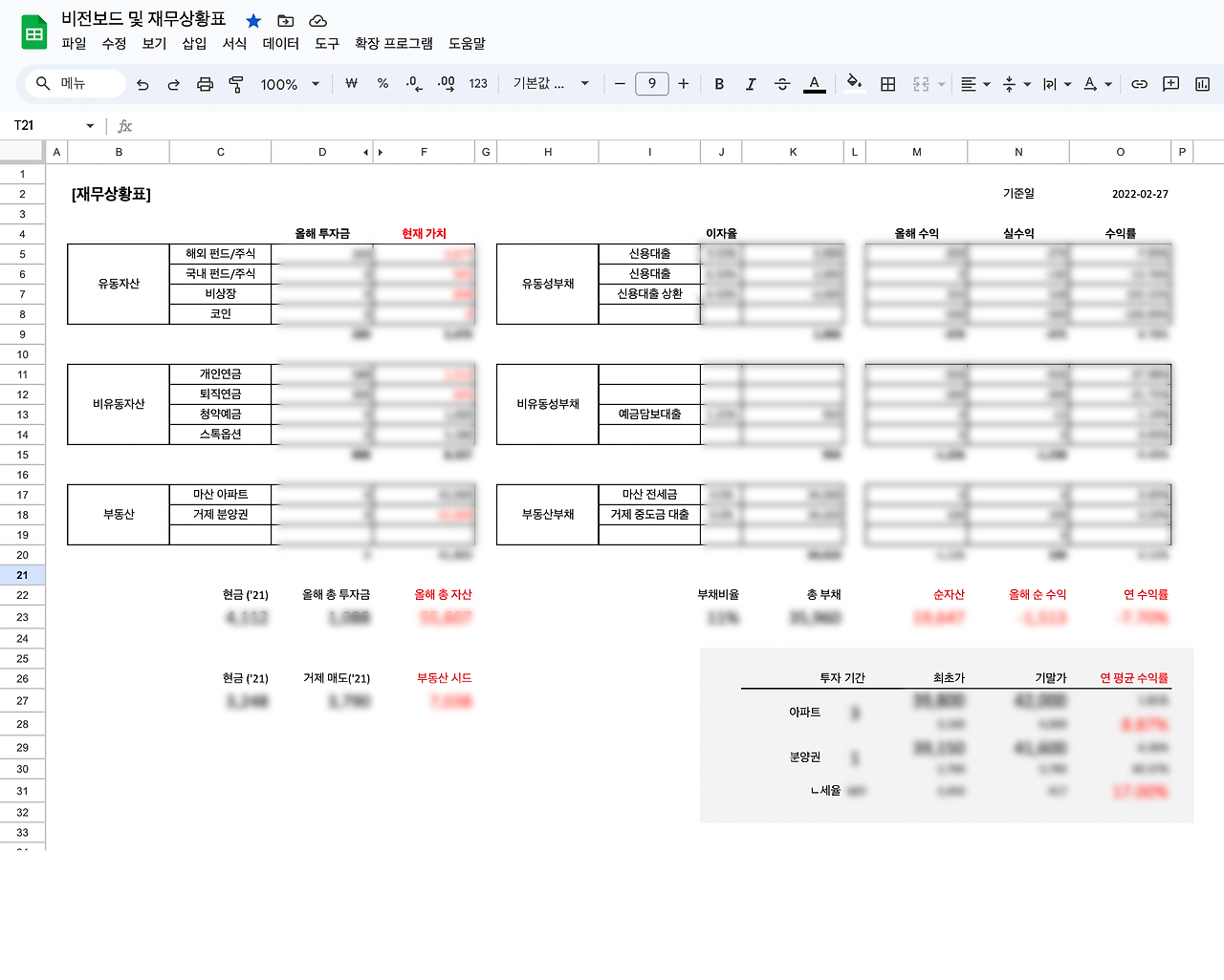 재무 포트폴리오와 재무상황표. 난 엑셀 덕후다.