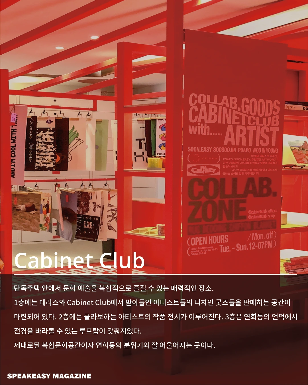- 캐비닛클럽: 서울특별시 서대문구 연희로 11가길 48-23