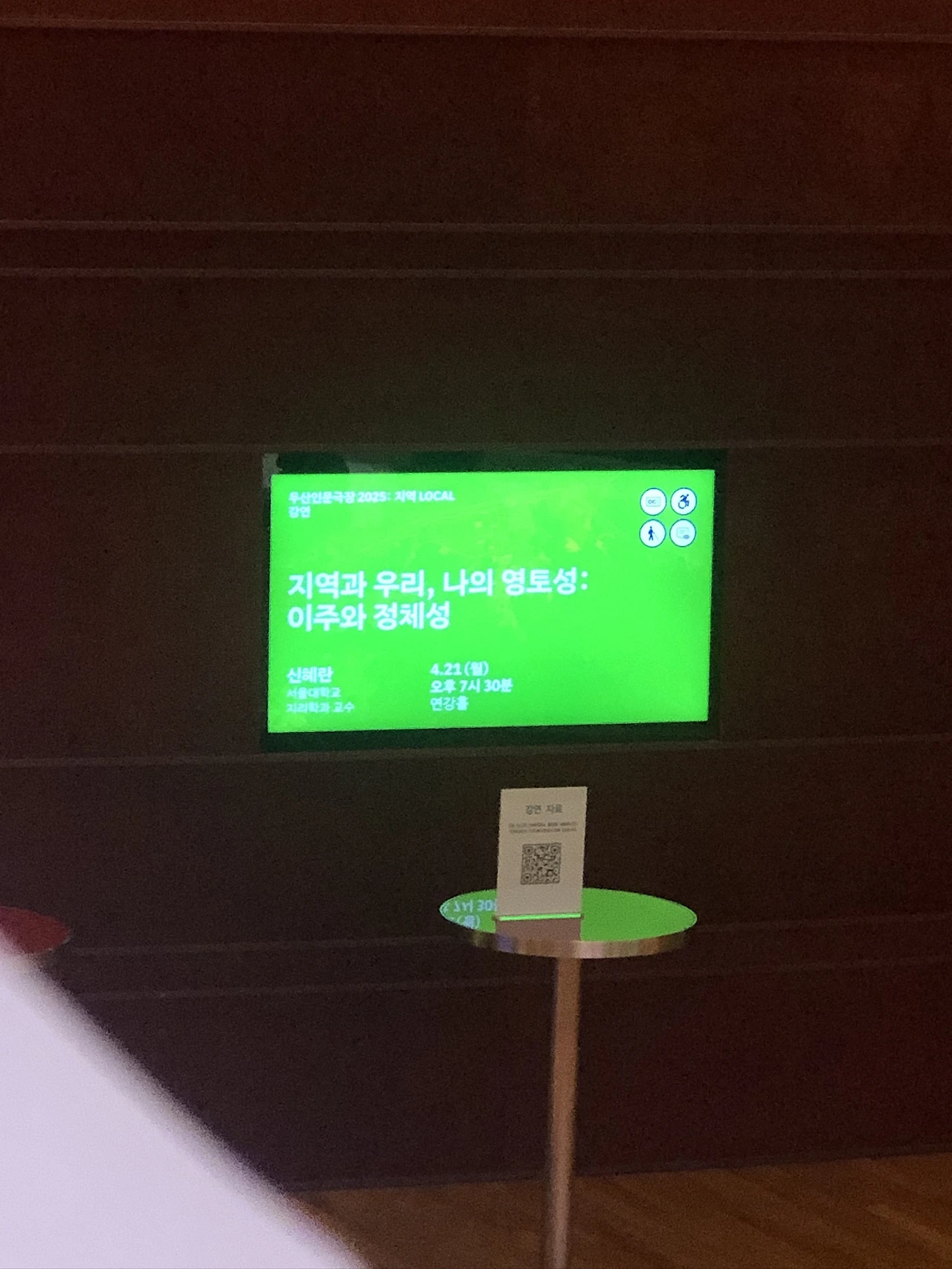4월 21일에 열린 두산아트센터의 강연, <지역과 우리, 나의 영토성: 이주와 정체성>에서는 이주라는 행위에서 비치는 사람들의 정체성, 그리고 꽤나 사회적이고 정치적인 지역의 특성에 초점을 둔 강의였습니다. 서울대학교 신혜란 지리학과 교수는 강의를 통해 우리가 끊임없이 변화하고 있는 지역의 경계를 어떻게 마주해야 하는지에 대한 화두를 던졌습니다. 신혜란 교수가 시사하는 바는 앞서 언급한 지금의 세상을 굉장히 날카롭게 지적합니다. 개인적으로는 듣는 동안 약간의 불편함도 동시에 느껴지기도 했습니다.