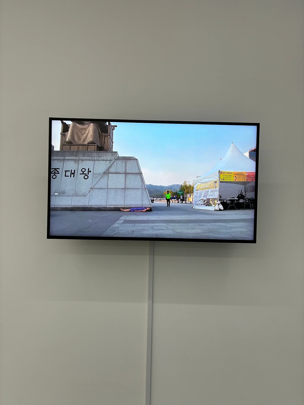 다음 작품을 위한 발걸음을 옮기며 한 여성의 영상에 시선이 꽂혔습니다. 광화문 거리와 효자동 사거리에서 1인 시위를 하는 여성. 이 여성은 길바닥에 눕기도, 지나가는 행인을 가로막으며 그녀의 존재감을 드러냅니다.