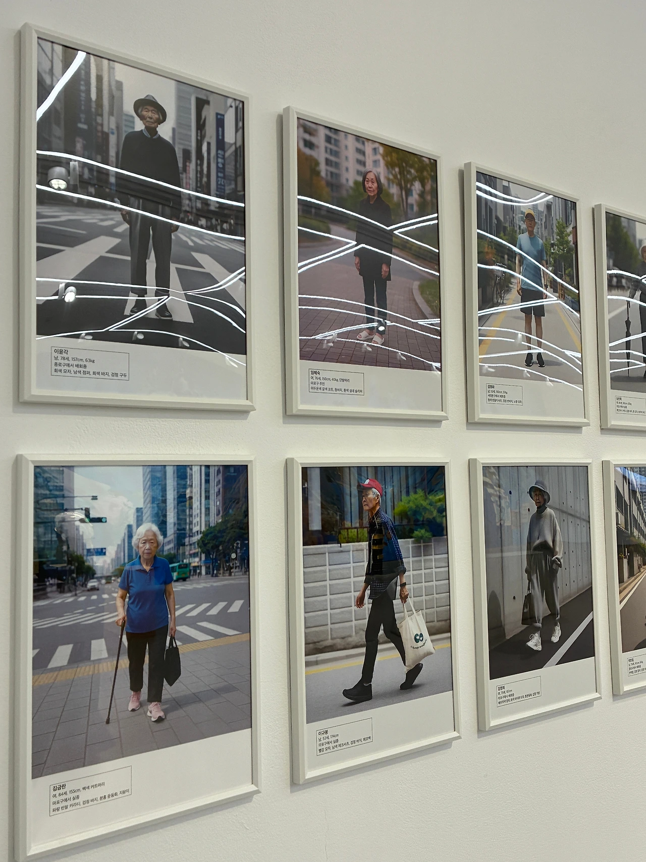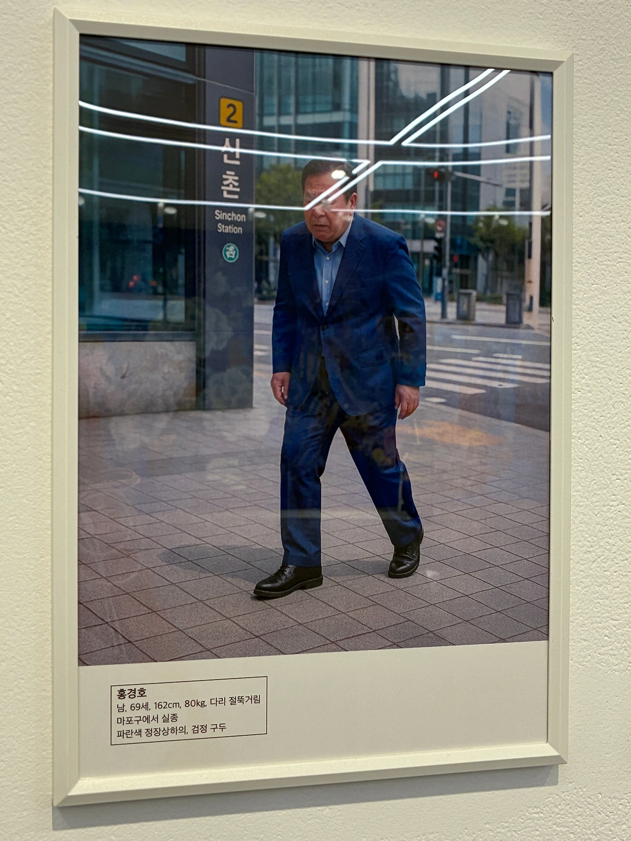 이유성 작가의 작품 뒤에는 특정 인물들의 사진이 길게 늘어져 전시되어 있었습니다. 사진들을 보자마자 실존하는 사람인가 싶다가도, 뭔가 아닌 것 같다는 생각이 들기도 했습니다. 자세히 보니 실제로 실종알림이 떴던 분들의 정보가 적혀있어서 더욱 이질감이 느껴졌습니다.