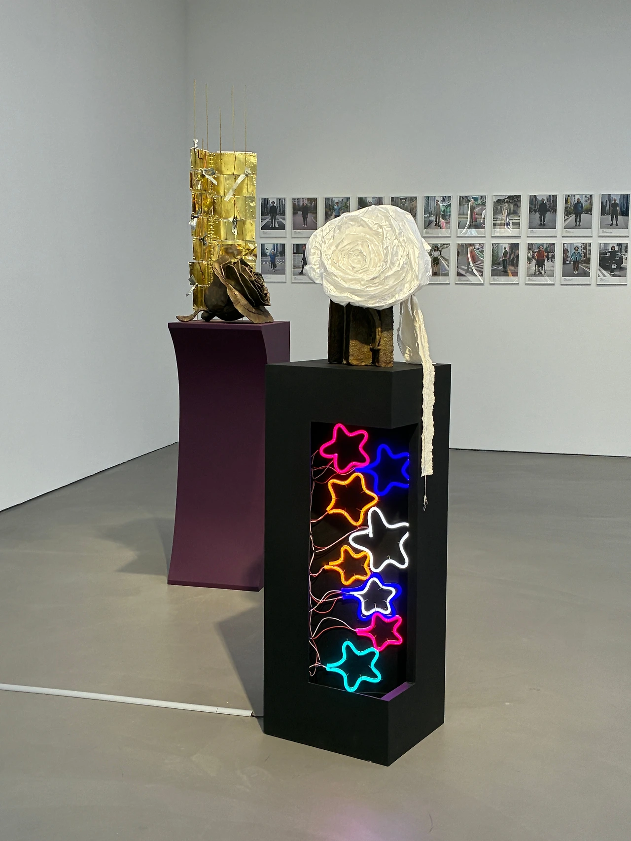 이 작품에서 네온사인과 거친 황동판 다음으로 눈에 띄었던 부분은 장미였습니다. '장미를 왜 두었을까.' 전시 해설에서 장미를 '인류사 전반에 걸쳐 복합적인 문화적 기호로 작동해 온 식물' 설명한 점을 보며, 나름대로 이해를 했습니다. '복합적인 문화적 기호'의 의미가 다소 어렵게 느껴지지만, 아마 종로의 전반적인 인상들, 작가가 종로를 거닐며 지녀왔던 생각과 느낌, 감정, 외적인 부분들 이 모든 것들이 복합적으로 작용하며 탄생한 장미가 아닐까요. 작가가 받아들였던 종로란 무엇인지, 정확하게 파악할 수는 없지만, 이 작품들은 저만의 종로에 대한 복합적인 기억과 그 속에 담긴 감정을 다시금 건드려줬다는 점에서 이 장미를 통해 작가와 잠시나마 연결되도록 해주었던 것 같습니다.