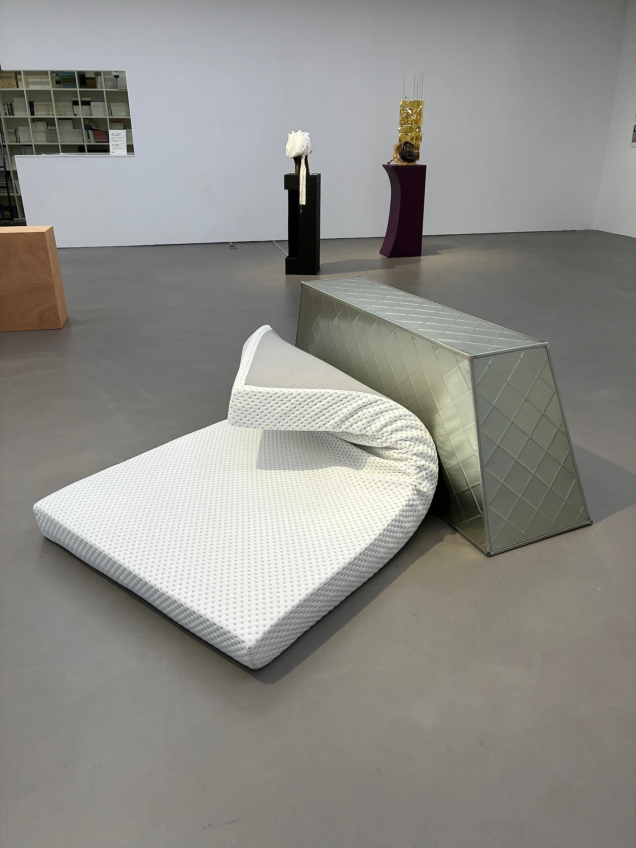 마지막으로 감상한 작품은 안진선 작가의 작품이었습니다. 주변에서 흔히 볼 수 있는 매트리스, 건축 자재들이 전시장 한가운데에 덩그러니 놓인 모습이 신선해 보였습니다. 한편으로는 제게 큰 울림이 되기도 한 작품들입니다. 사실상 이 작품들은 전시장에 놓이기 전까지 일상에 버려진 사물에 그쳤을 것입니다. 그만큼 이 사물들에 작가의 특별한 손길이나, 인위적인 무언가가 행해지지 않아 보였고, 사물 그대로가 전시물 행세를 하고 있었습니다. 전시장이라는 공간으로 인해 가치가 재구성된 이들. 무언가의 존재라는 것이 물질적으로 정신적으로 가치가 완전히 달라질 수 있다는 사실이 묘한 감정을 일게 합니다.