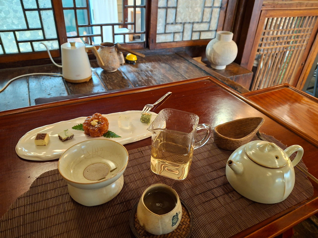 이 곳은 내가 좋아하는 한옥인데다 개별 자리마다 전기포트가 있어서 언제든지 물을 끓여 따뜻한 차를 새로 우려먹을 수 있어 좋았다.