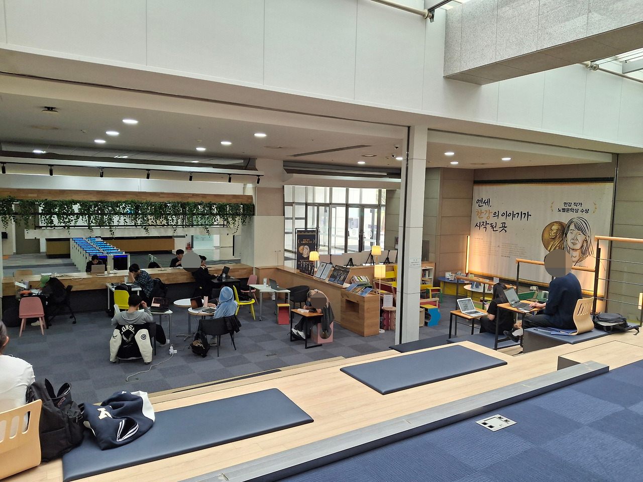 캐주얼하게 공부하고 휴식할 수 있는 테이블과 쇼파, 세미나룸으로 꾸며져 있는 학술정보관 1층 공간들도 좋지만