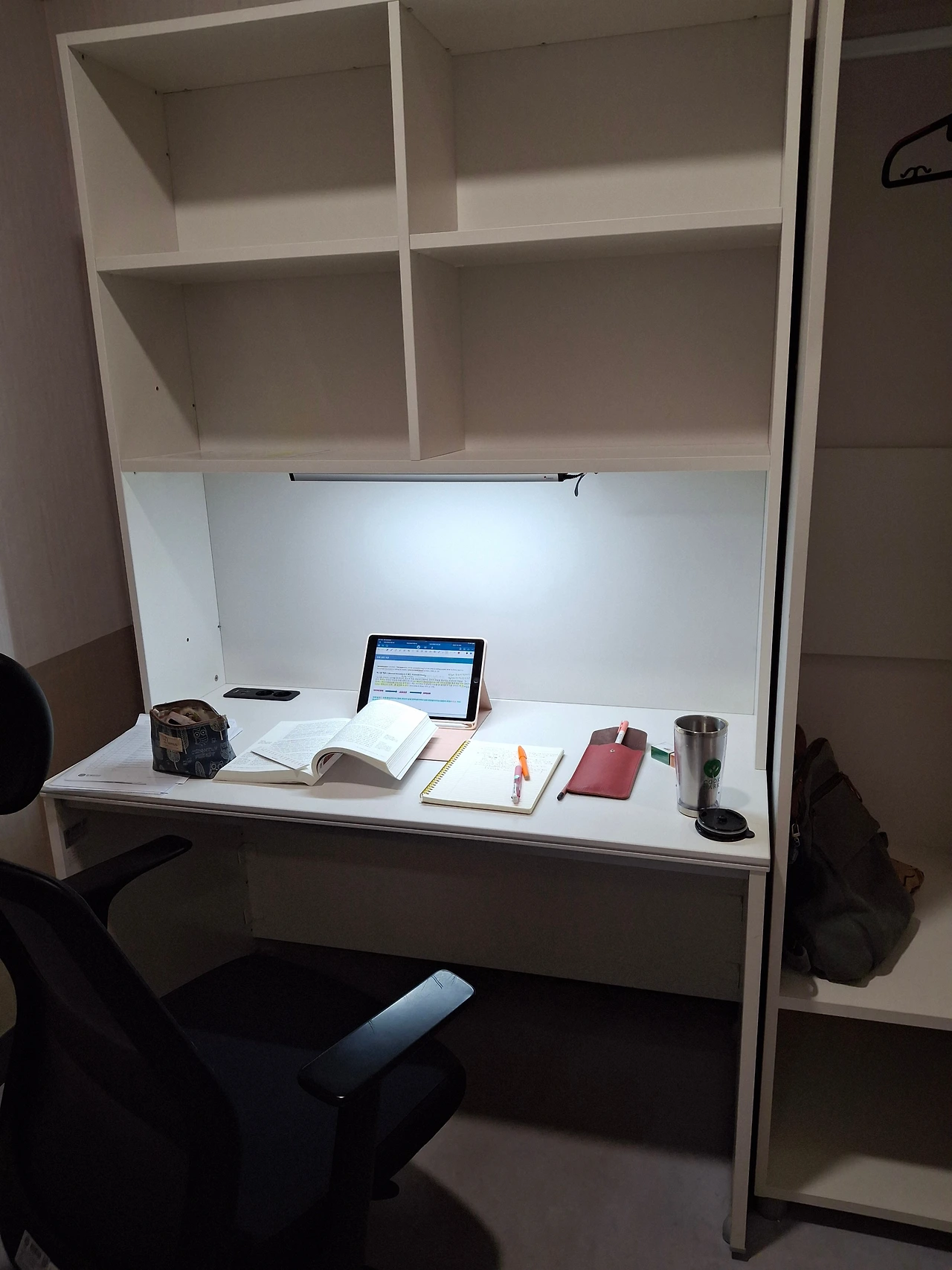 별도의 룸으로 구분되어 있고 옷장과 책장도 널찍해서 방해받지 않고 8시간동안 집중하기 좋기 때문이다.