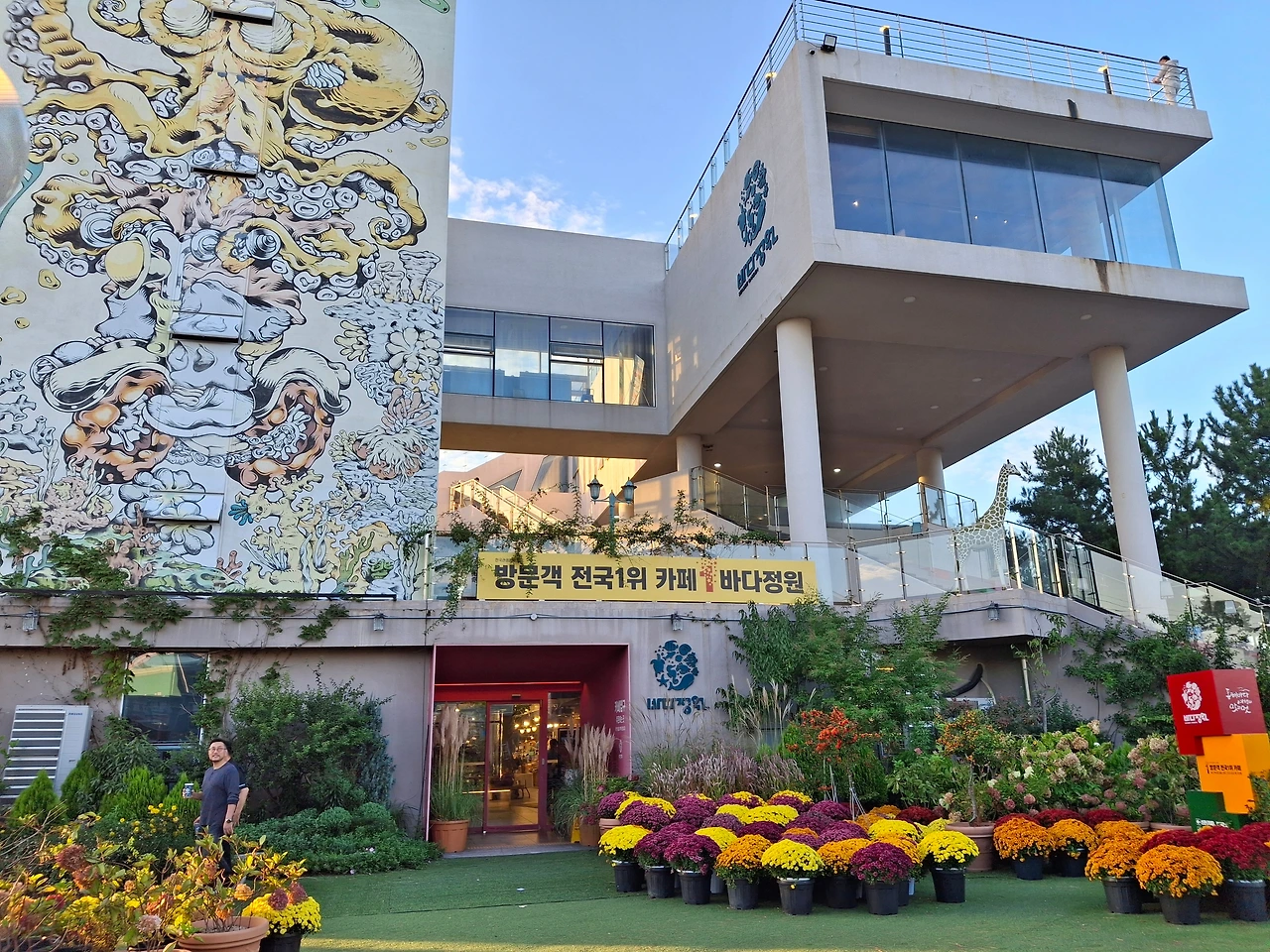 바다뷰와 송림 자리가 좋은 대형카페 바다정원.