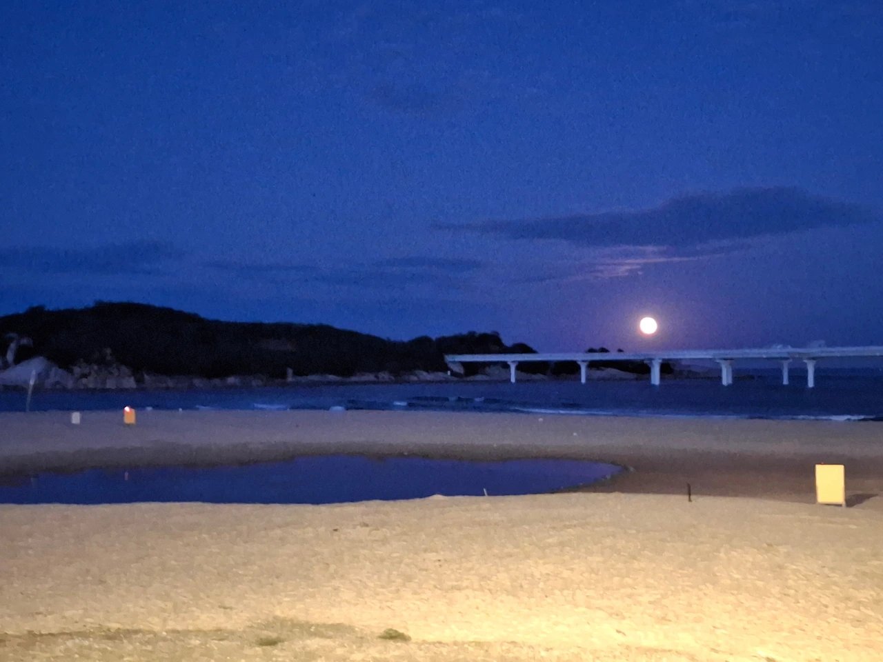 한가위 보름달이 서서히 뜨고 있는 송지호해수욕장.