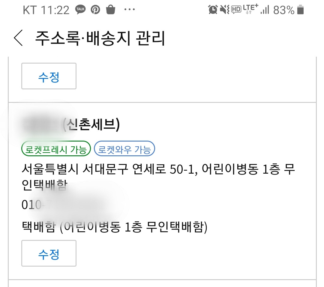 내 쿠팡 주소록. 여기가 신촌 세브란스 어린이 병원 주소입니다!!!