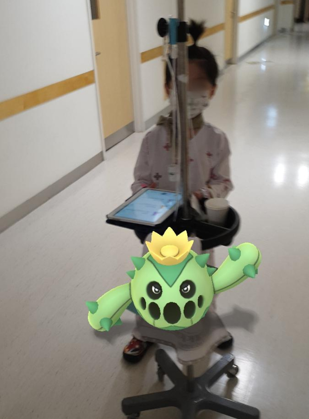 이때, 스테로이드 투약으로 인해 전신에 근육이 빠지면서 입원 후반부에는 아이가 걷는 거 자체를 굉장히 힘겨워했다. 어쨌든 걸어야 하는 상황에서 강제 운동의 동기 부여를 위해 모바일 게임을 시켜줬는데 바로 포켓몬 GO였다.