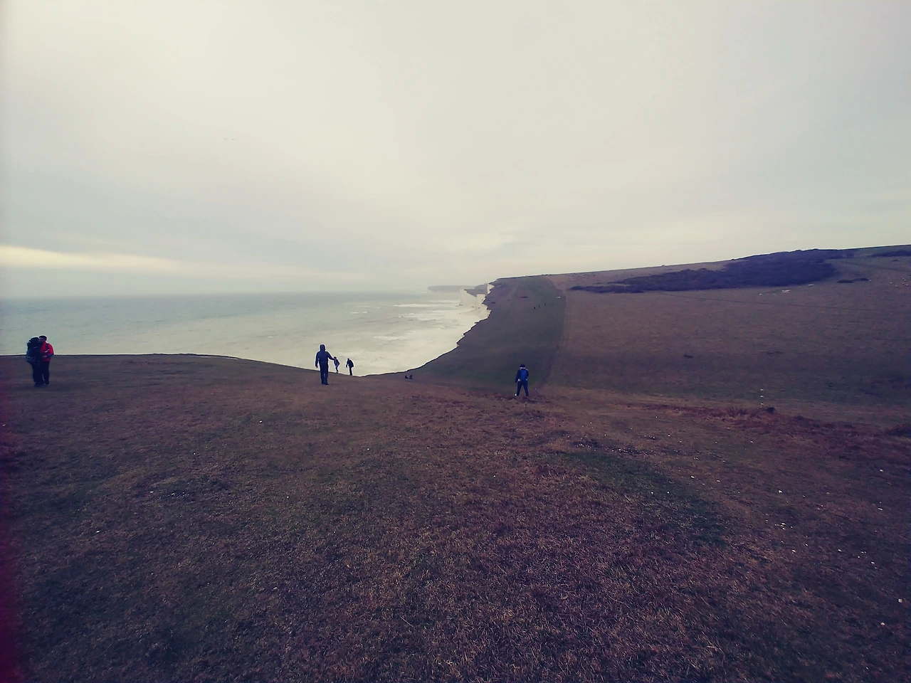 흐릿하고, 파도는 새하얀 절벽에
