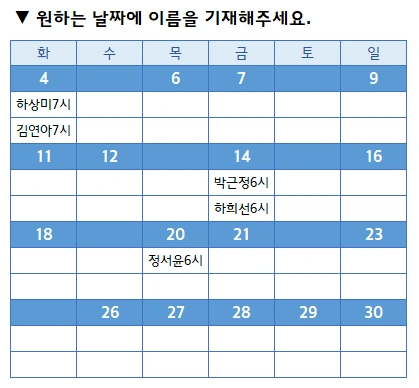 ▶ 가능하면 26일 이전 일정으로 맞춰주세요