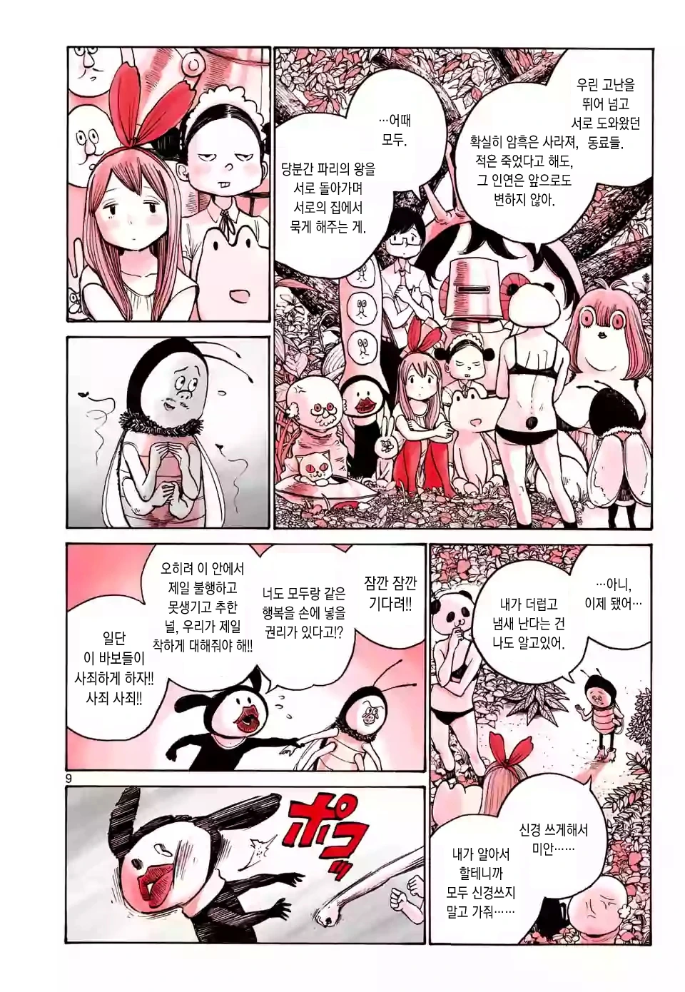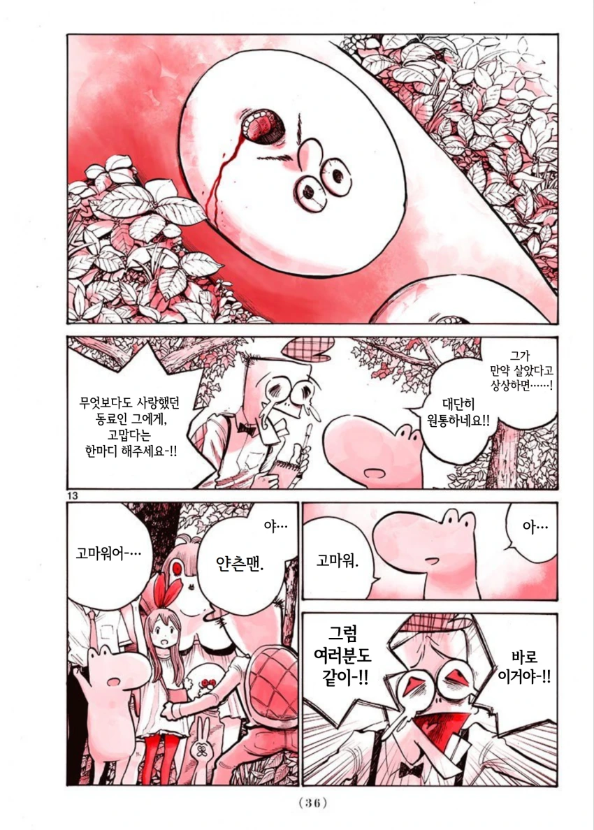이 만화를 읽으면 드는 생각인데, 이니오가 가장 좋아하는 주제인 사람의 입체성을 정말 잘 표현해 냈다. 아무리 불쾌하더라도 기어이 사람 본성의 악을 포착해 내 독자들에게 들이미는 것이다. 이니오가 가장 잘하는 독자들이 고개를 돌리지 못하게 꽉 붙잡고 인간의 본성에 내재된 악을 잊지 못하게 보여주어 각인시킨다.