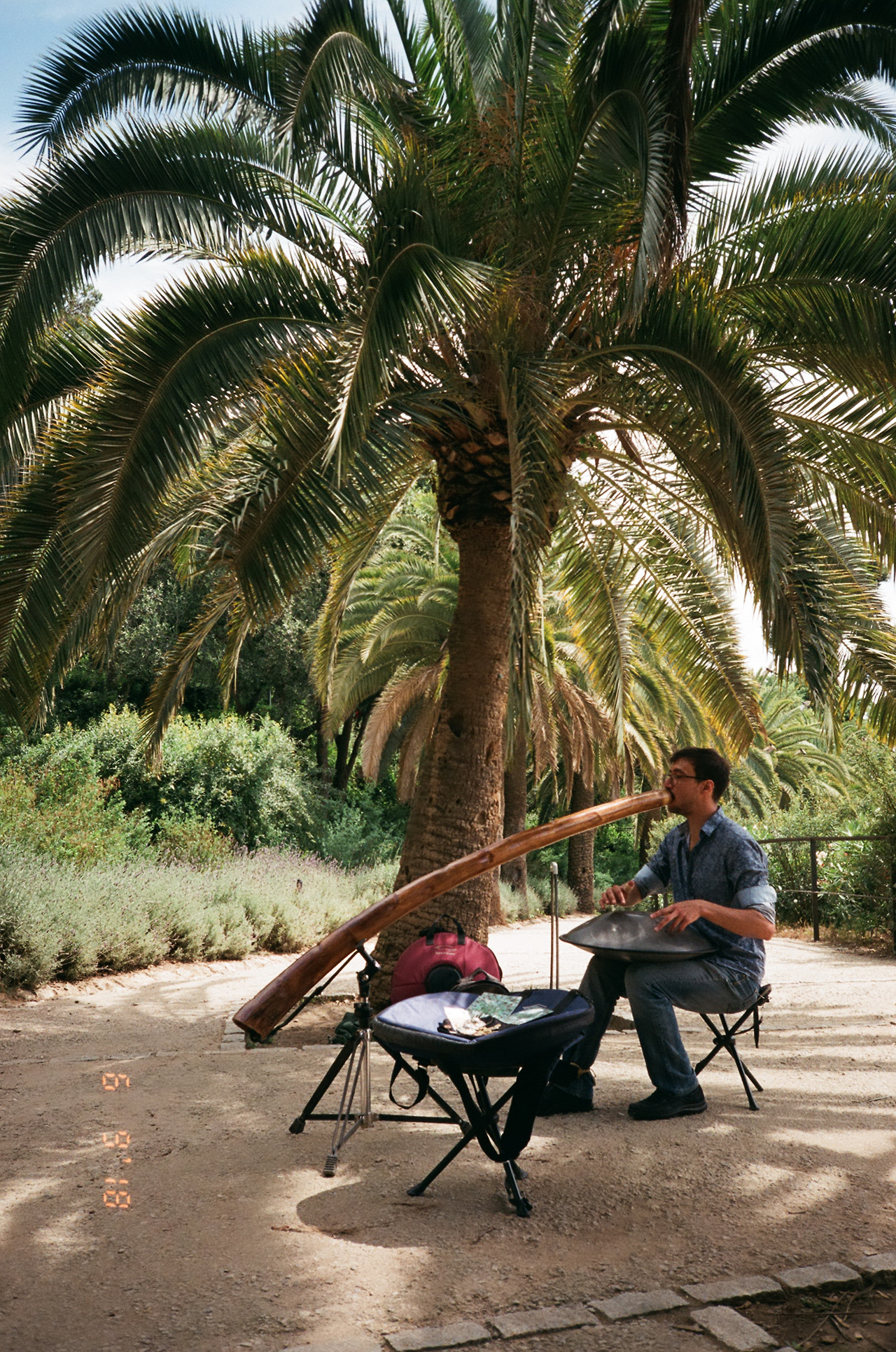 음악 소리가 울리는 곳을 찾으니 마침 적당한 벤치가 있다. 물로 목을 축이며 연주를 듣는다. 처음 보는 악기가 둘이다. 무릎 위에 올린 악기는 손바닥으로 리듬을 만들고, 긴 나무로 만든 악기는 굵은 울림을 낸다. 전기 없는 일렉트로닉 같다. 주변에 모인 사람들이 두어 번 바뀔 무렵까지 자리를 지켰다. 앉은 자리가 편안하고 음악 역시 그러했기 때문이다. 주머니를 털어 팁을 주고 일어나 또 다른 앉을 곳을 찾는다. 꼬마 둘이 흙놀이를 하는 놀이터로 자리를 옮긴다. 달의 무릎을 베고 누우니 잠이 오려고 한다. 뒷목, 머리카락이 시작되는 부분을 쓰다듬어주면 특히 그렇다. 거기에 잠을 부르는 뭔가가 있는 모양이다.