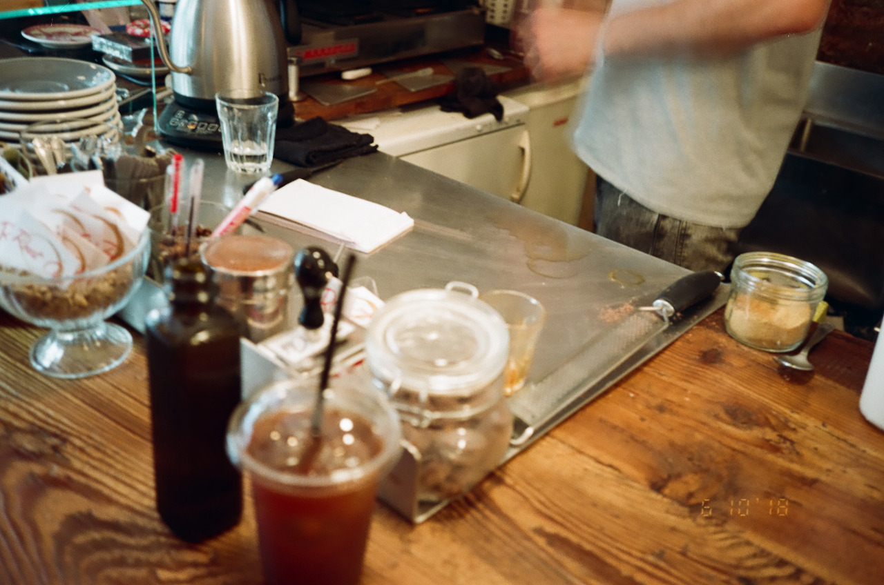 별 기대 없이 들어선 가게에서 정말 맛있는 식사를 한다. 에피타이저에서 이미 맛집의 기운을 감지한다. 구운 가지와 콜리플라워, 그리고 오이와 토마토, 양파를 섞은 샐러드. 맛은 담백하고 솔직하다. 이국적인 건강식의 매력. 이윽고 주문한 샥슈카가 나왔다. 납작한 팬엔 걸쭉한 토마토 소스와 반숙 계란이 자글자글 끓는다. 피타 빵을 쭉쭉 찢어 발라먹으니, 고국이 멀지 않다. 한국 음식처럼 매운맛은 아닌데, 이상하게 김치찌개 맛집에 온 느낌이다. 유난히 아니 유일하게 애국적인 나의 혀는 기쁨을 감추지 못한다. 우리 여기에 다시 오자, 다 먹기도 전에 다짐하고 만다. 부른 배를 안고 집 앞 까페에서 한국인의 음료, 아이스 아메리카노도 한 잔 마신다. 예쁘게 찍으라며 커피 바 위를 훔쳐주는 직원 덕에 웃는다. 잘 먹고 잘 쉬고 잘 자는 것. 점점 여행의 모토가 단순해진다. 여기에 하나를 더하자면, 싸우지 않는 것. 우리는 평화와 안식을 위해 이곳에 왔다. 입 안의 중동 음식이 샬롬을 알린다.