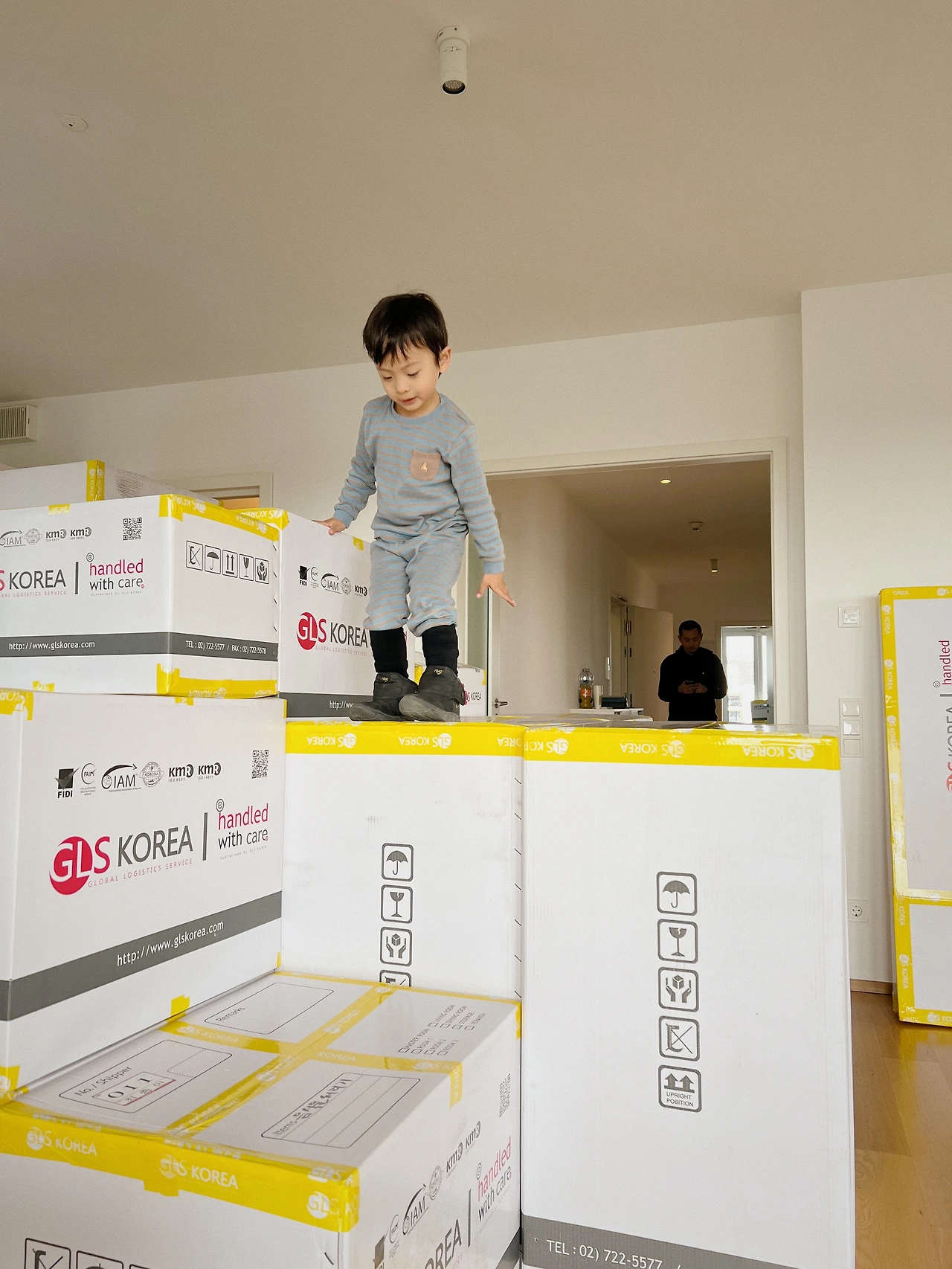 전날 밤, 포장한 항목들을 기록해 둔 표를 보고 미리 배치를 구상해 두었다. 1번 박스는 거실, 2번 박스는 부엌, 3번 박스는 발코니 이런 식이었다. 박스를 든 직원들이 현관문에서 번호를 부르면 빙고에 체크를 한 후, 배치표를 보고 어디로 가라고 말해주면 되었다. 짐들은 순식간에 집안 곳곳을 메웠다. 박스 옆에 박스, 박스 위에 박스. 꼬마는 기어코 맨 윗 박스까지 기어올랐다 내렸다를 반복했다. 조그만 머리가 천장에 닿을 듯했다. 나는 잠시 꼬마를 꼬셔 산책을 다녀왔다. 물, 콜라, 환타, 그리고 빵 한아름. 이삿짐센터 직원들을 위한 간식을 사들고 돌아오니 133개의 박스는 모두 집으로 들어온 상태였다.