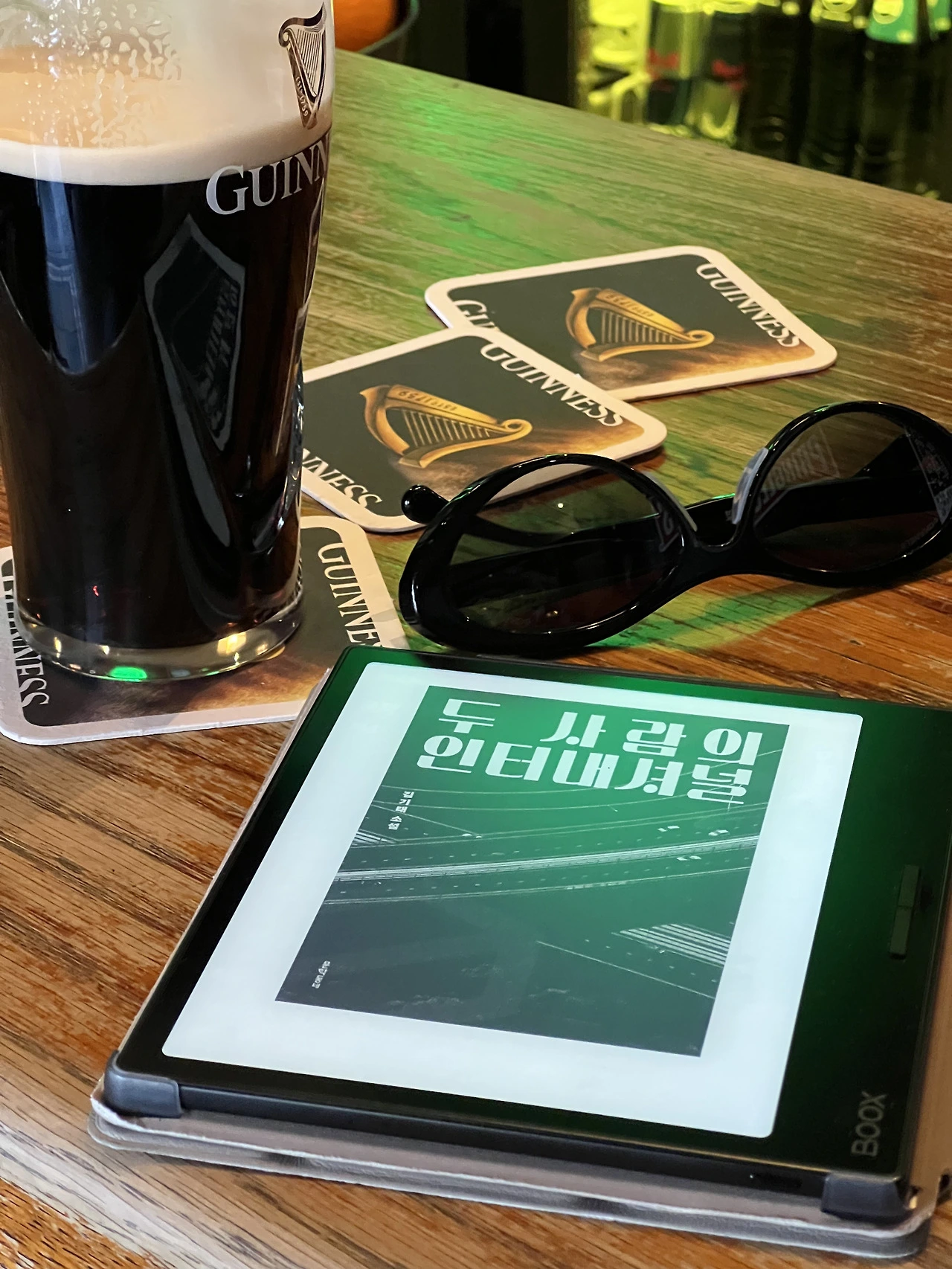 멀미와 소란 없이 무사히 동네로 진입했다. 꼬마들은 슬슬 잠에 깨어 두 눈을 껌뻑였다. 안전하게 잘 왔다는 안도감 반, 재미있는 이야기가 끝나 아쉬움 반이었다. J는 며칠 후 유튜브 링크 하나를 보내왔다. 음악도시 설특집 라이브 방송, 게스트로 윤종신과 장항준이 나온 편이었다. 나는 이어폰을 꽂고 플레이 버튼을 눌렀다. 프리미엄 구독을 하지 않은 탓에 화면이 꺼지면 방송도 따라 꺼졌다. 결국 화면을 줄곧 켜놓은 채로, 주머니에 조심스레 핸드폰을 넣고 봄날의 거리를 쏘다녔다. 낄낄거리며 퀴즈를 맞히는 셋의 젊은 목소리를 들으며, 나는 종종 따라 웃음을 터뜨렸다. 트램에서 갑자기 웃는 여자, 횡단보도에서 껄껄거리는 여자, 그게 나였다. 내 마음속의 단골이었던 아이리시 펍의 바텐더는 드디어 나를 기억해 주었다. 너 예전에 여기서 글 쓰지 않았어? 응, 맞아. 그랬었어. 펜을 빌렸던 터라 기억하고 있나 보다. 오늘은 뭐 할 거니? 나는 전자책을 들여보였다. 오늘은 이거야. 그리고 기네스를 마시며 책을 읽었다. 화면을 눌러 북마크한 페이지가 많고도 많았다.