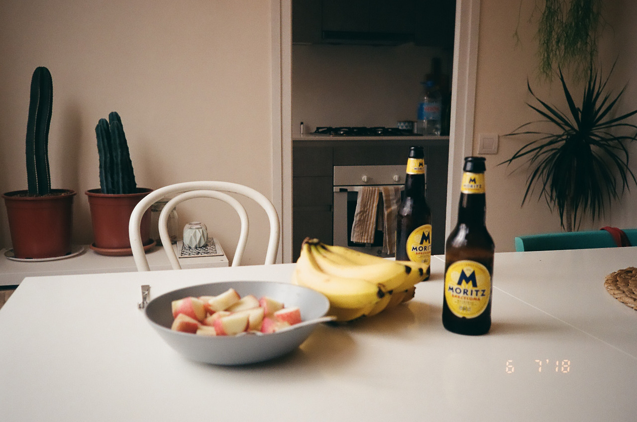 집으로 돌아와 식탁을 차린다. 여름의 맛이 밴 복숭아. 이때부터 아무 때나 맥주가 등장하곤 했다. 여행 전 탈이 나 며칠을 굶었다. 티백으로 된 보리차를 계속 마시며 속을 달랬다. 당연히 술은 한 방울도 입에 대지 않았는데, 이제 때가 된 것이다. 아침 밥상부터 늦은 밤 야식까지 물처럼 맥주를 마신다. 그렇게 일상의 경계를 허물기 시작한다. 웃음이 헤퍼지고 매 순간이 나른해진다. 집 떠난 지 오십 시간, 아직 달과 다투지 않았다. 날씨와 맥주가 우릴 그렇게 만든다.