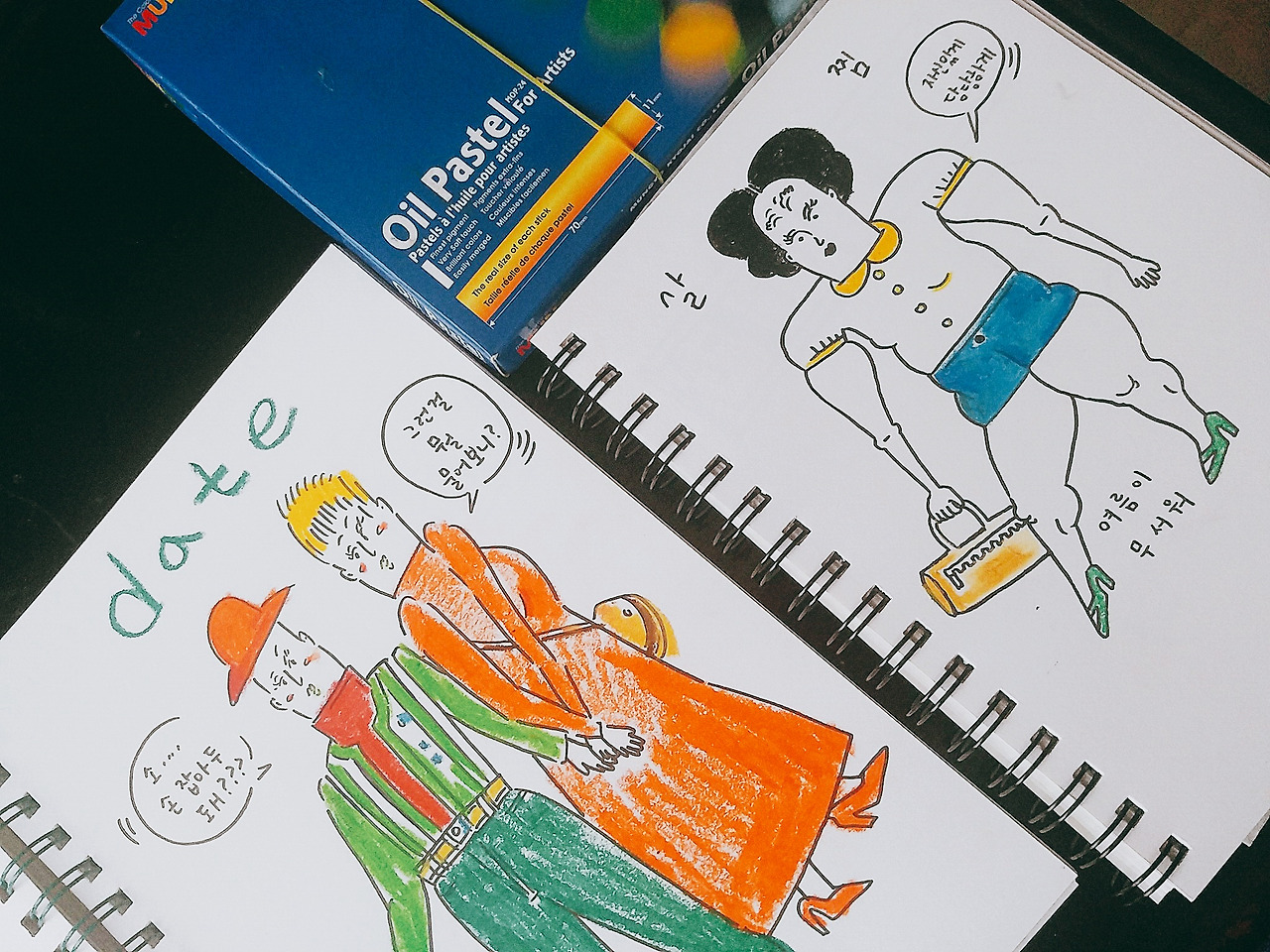 저의 스케치북을 소개합니다. 저는 주로 채색을 포토샵과 오일파스텔을 이용해서 작업을 합니다.