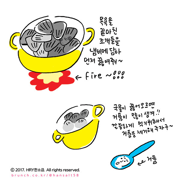가끔 조개를 먹다 씹히는 모래에 깜짝 놀랄때가 있다