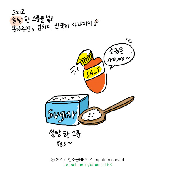 김치를 볶아봐요.