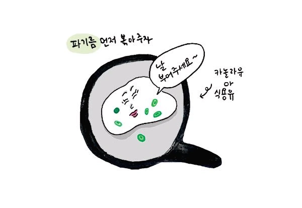 카놀라유 or 식용유를 두르고 파기름을 먼저 내요