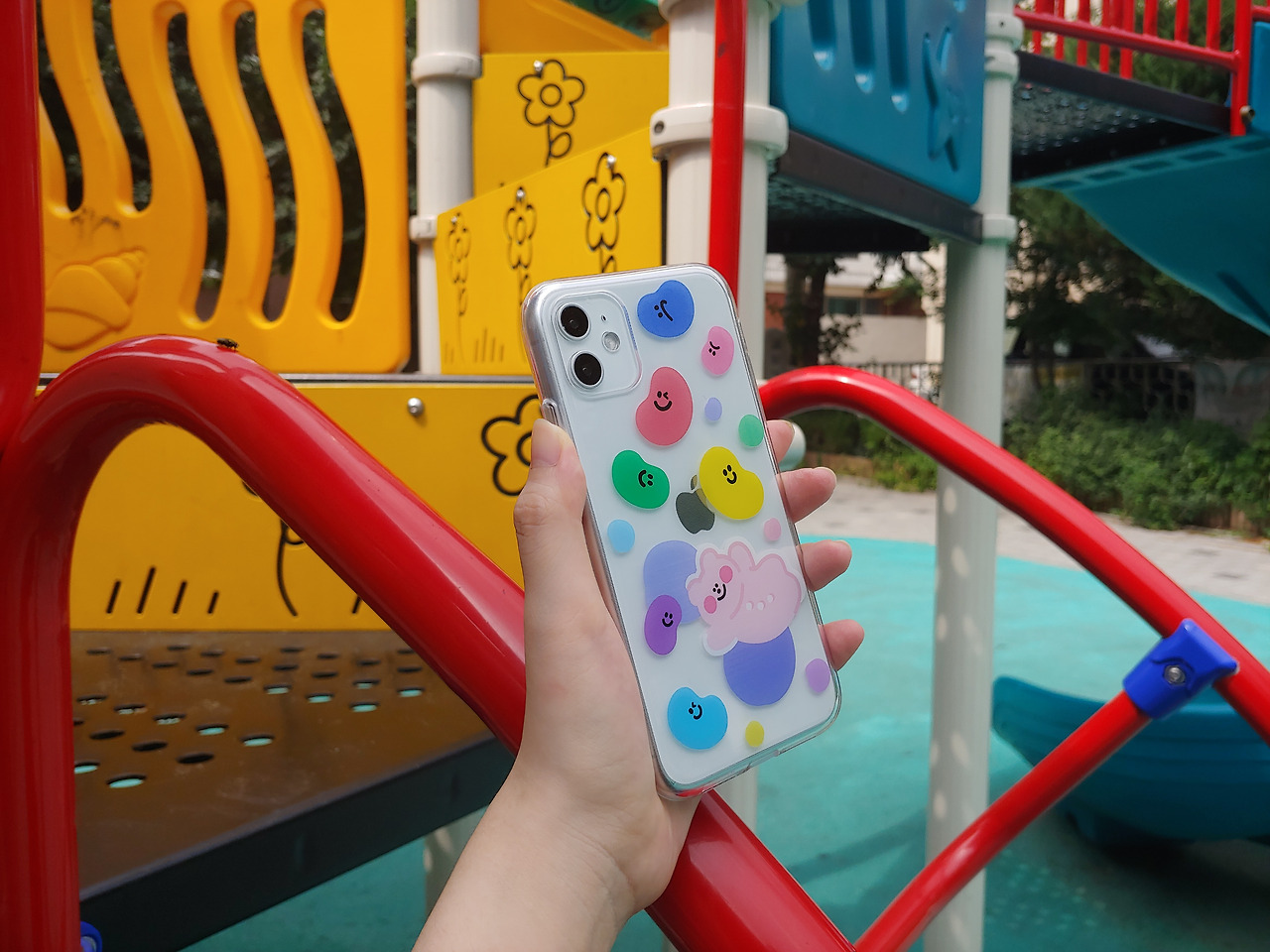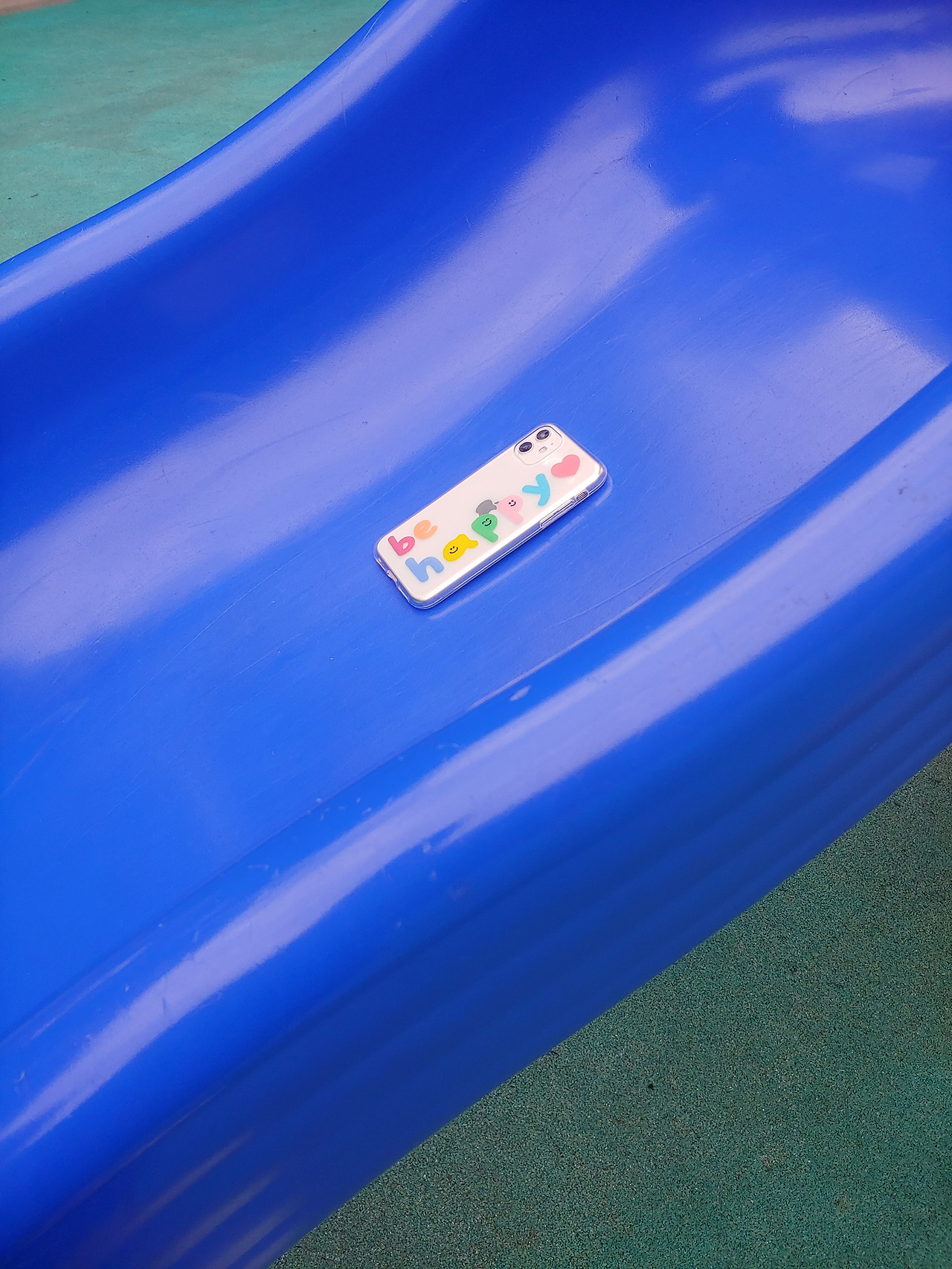 유레카! 그곳은 바로 놀이터였다. 폰케이스 디자인의 특징을 생각해보자! 알록달록 아기자기 귀여운 스타일의 폰케이스는 놀이터와 함께하길 좋은 장소였다. 나의 시선을 끄는 쨍한 파란 미끄럼틀 앞에서 카메라 셔터를 눌렀다.